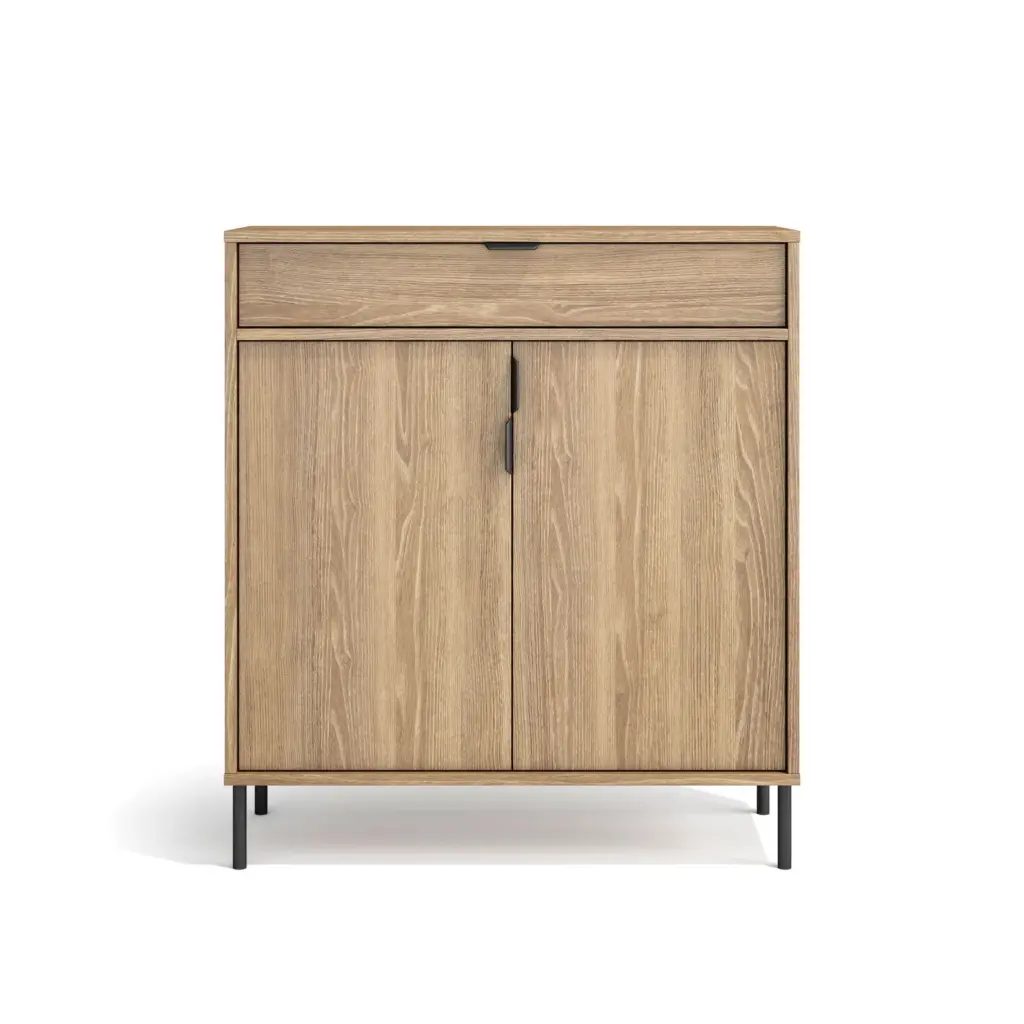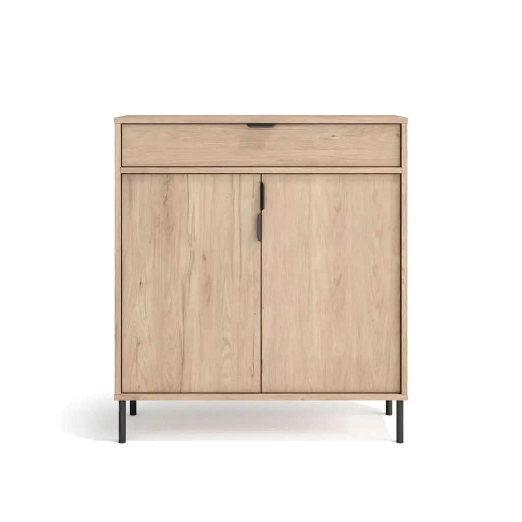 Dentro de la colección ALICE presentamos un mueble auxiliar fabricado en melamina con detalles en metal. Diseño limpio y sencillo que aportará un toque elegante.