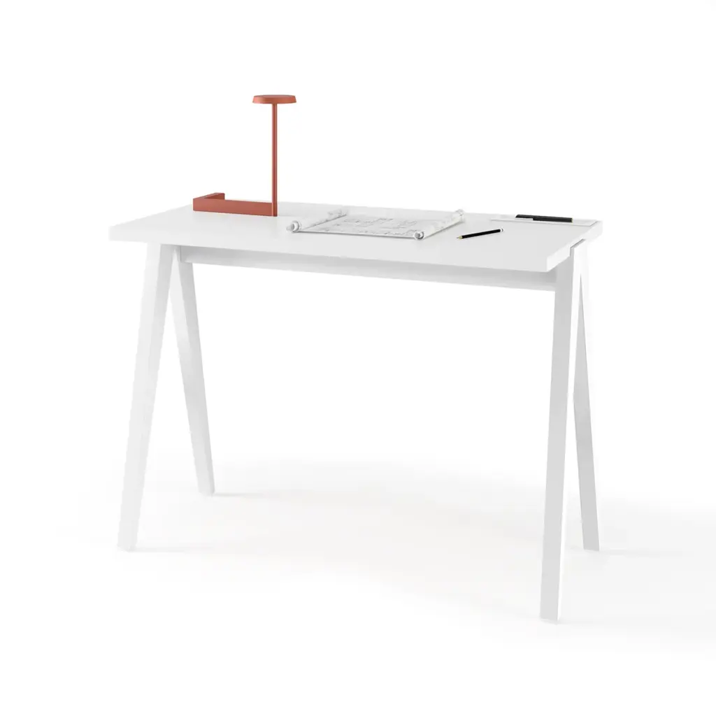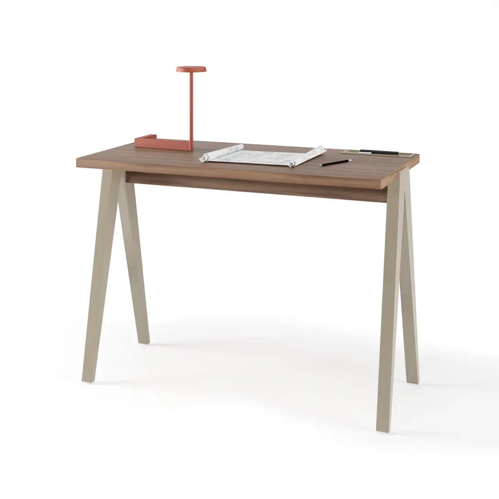 La colección COMPÁS presenta dos escritorios de diferentes tamaños, fabricados en melamina y madera de haya de alta calidad. Caracterizada por sus infinitas combinaciones de color, su diseño funcional ofrece un amplio espacio de trabajo.