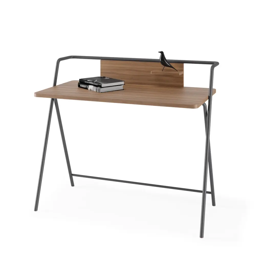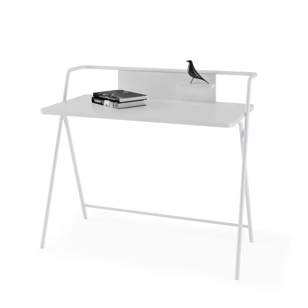 La colección KLIP ofrece un escritorio con estructura de melamina y patas metálicas, combinando durabilidad y diseño atractivo. Su estilo contemporáneo lo convierte en la opción ideal para oficinas y espacios modernos, brindando funcionalidad y un toque elegante.