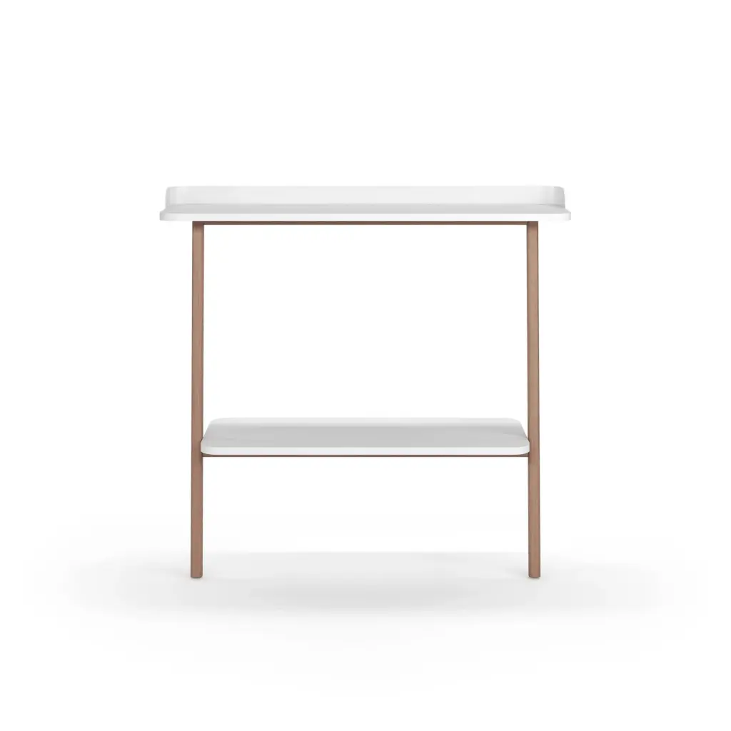 La colección SUOMI presenta una consola de diseño único, fabricada en melamina, haya y metal, disponible en una infinidad de acabados. Perfecta para quienes buscan funcionalidad y estética en una sola pieza.