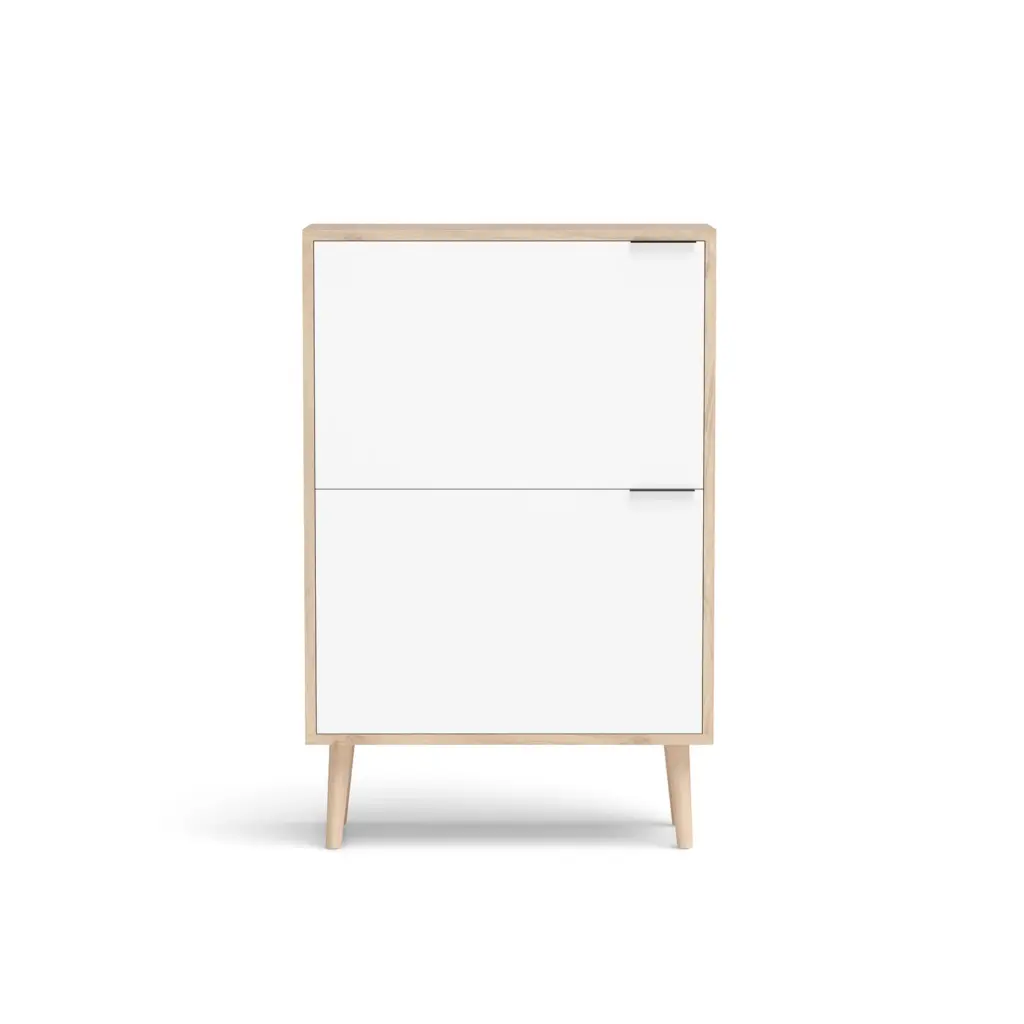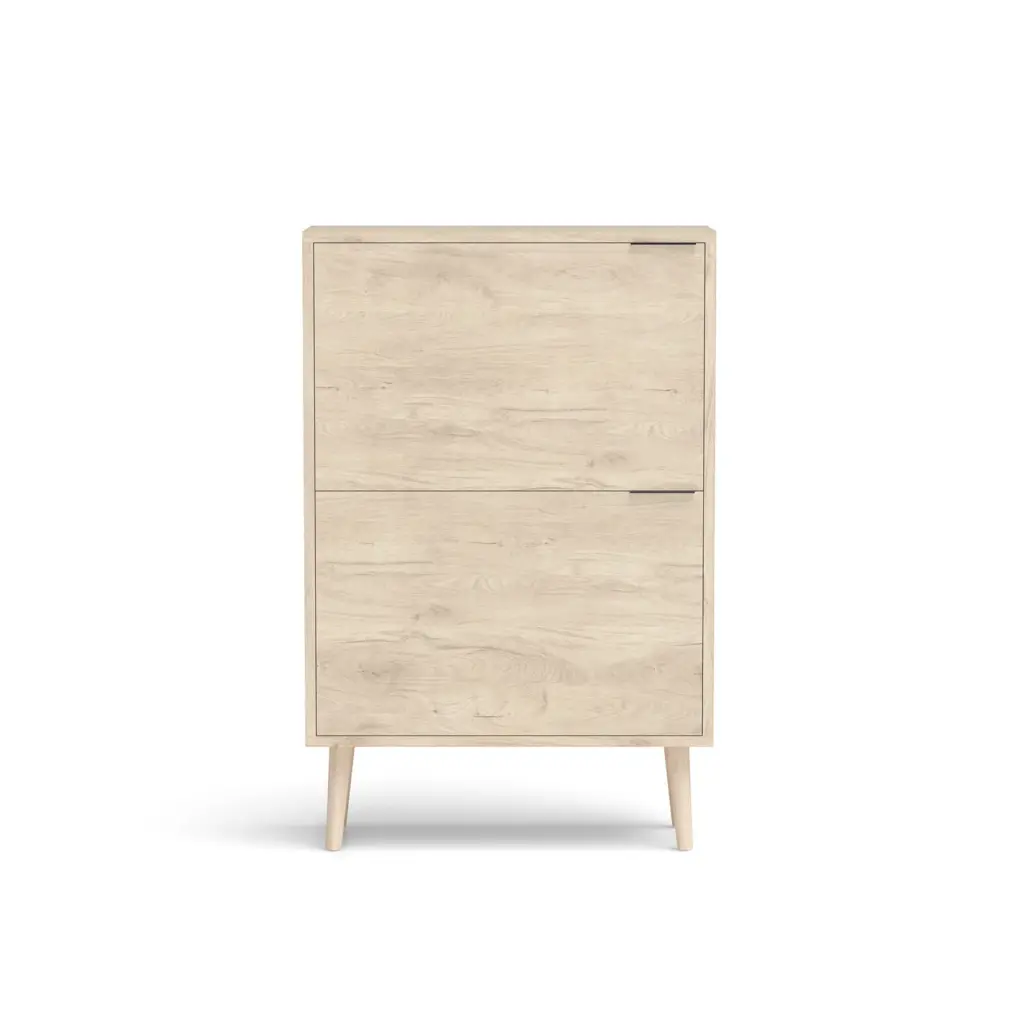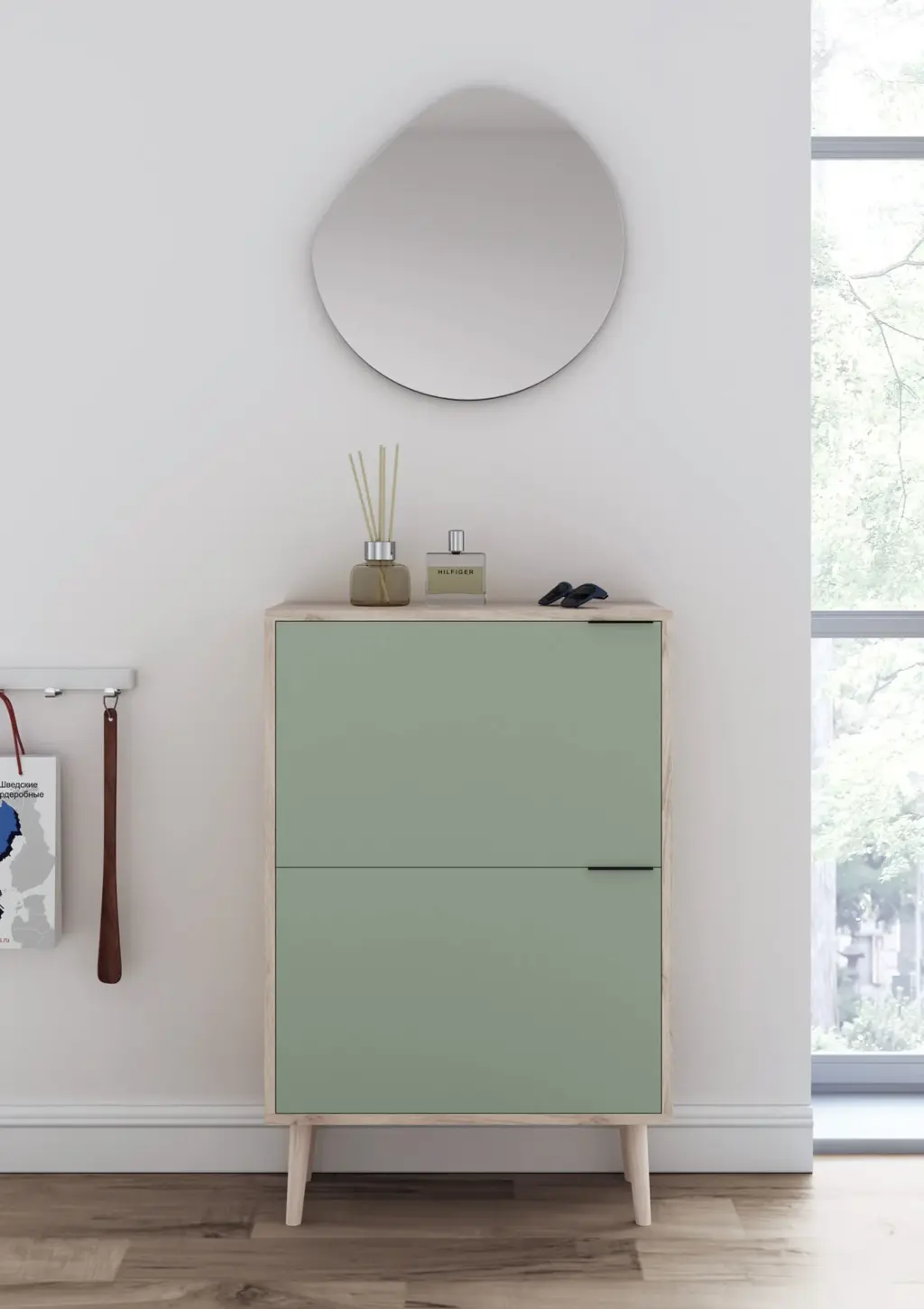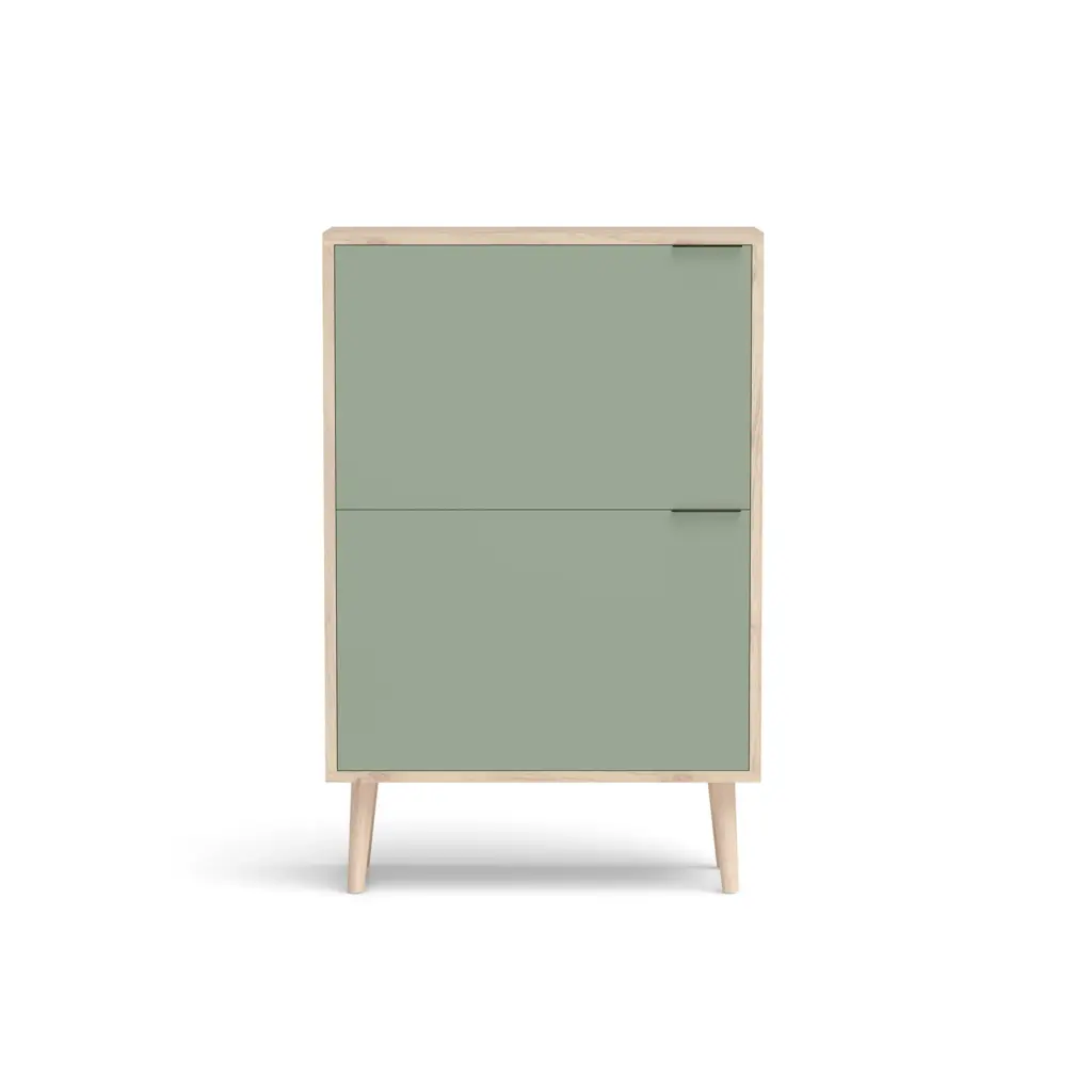 La colección VICKY incluye un modelo de zapatero abatible. Diseño sencillo en melamina que combina practicidad y estilo en un solo elemento.