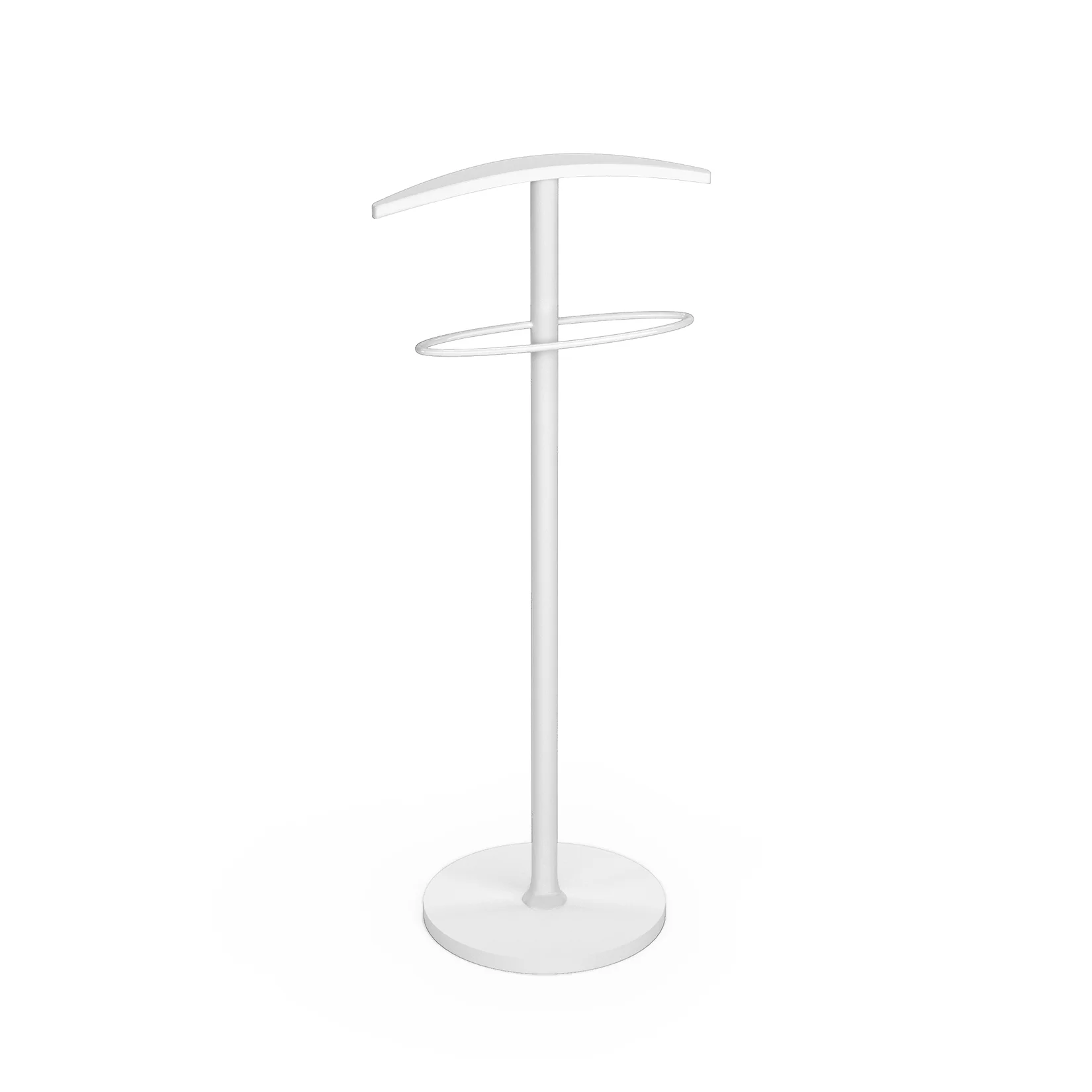 Galán de noche fabricado en madera de haya y MDF con base circular y pantalonera de metal lacado. Este galán con su diseño sencillo y estilizado aportará funcionalidad y un toque moderno que podrás adaptar al estilo del dormitorio gracias a la infinidad de colores disponibles.