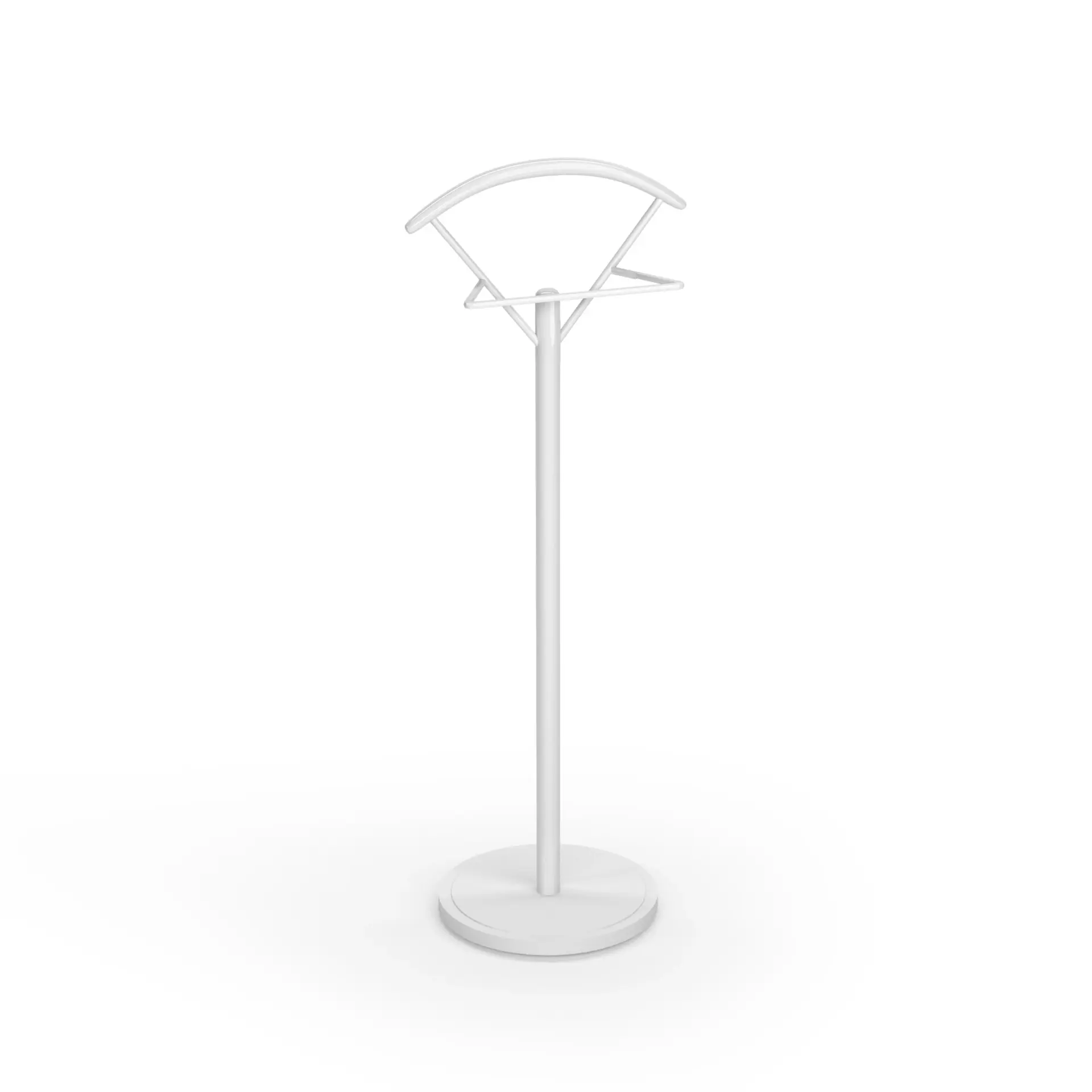 Galán de noche fabricado en madera de haya con base circular en MDF y pantalonera de metal lacado. Este galán con su diseño sencillo y estilizado aportará funcionalidad y un toque moderno que podrás adaptar al estilo del dormitorio gracias a la infinidad de colores disponibles.