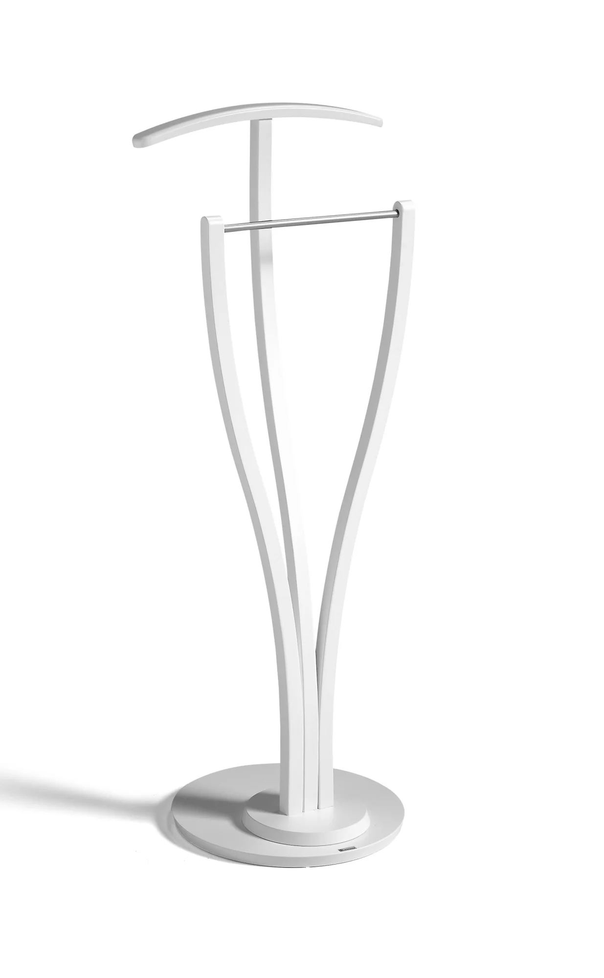 Galán de noche fabricado en madera de haya con pantalonera metálica cromada. Original diseño en líneas curvadas que dará un toque único al dormitorio. Personalízalo a tu gusto escogiendo entre nuestra amplia variedad de colores.