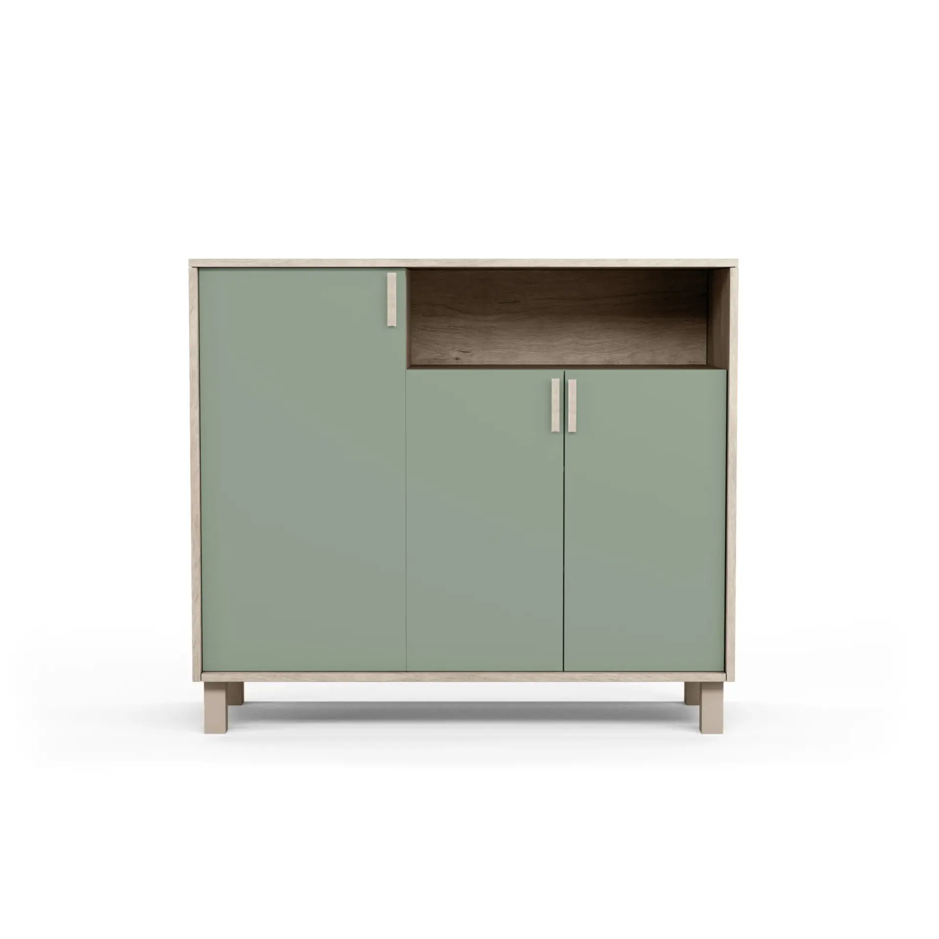 Zapatero fabricado en melamina con patas y tiradores de madera de haya. El interior se compone de 5 estantes, 3 a un lado y 2 a otro, proporcionando una gran capacidad de almacenamiento. Gracias a su gran variedad de acabados y su multifuncionalidad, se adaptará en infinidad de espacios y permitirá crear un espacio acogedor en cualquier estancia de la casa.