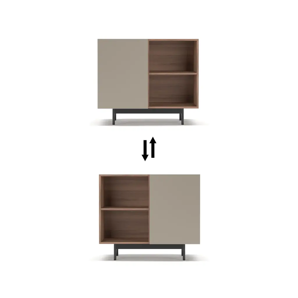 Mueble multifunción fabricado en melamina con patas en metal lacadas. La amplia gama de combinaciones posibles que ofrece este modelo lo hacen un elemento esencial para personalizar cada espacio. Su versatilidad y diseño permite adaptarlo a diferentes necesidades como mueble de entrada, de almacenamiento, zapatero, entre otros usos.