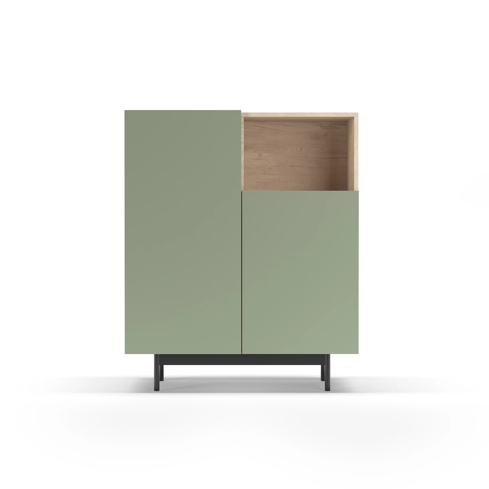 Mueble multifunción fabricado en melamina con patas en metal lacadas. La amplia gama de combinaciones posibles que ofrece este modelo lo hacen un elemento esencial para personalizar cada espacio. Su versatilidad y diseño permite adaptarlo a diferentes necesidades como mueble de entrada, de almacenamiento, zapatero, entre otros usos.
