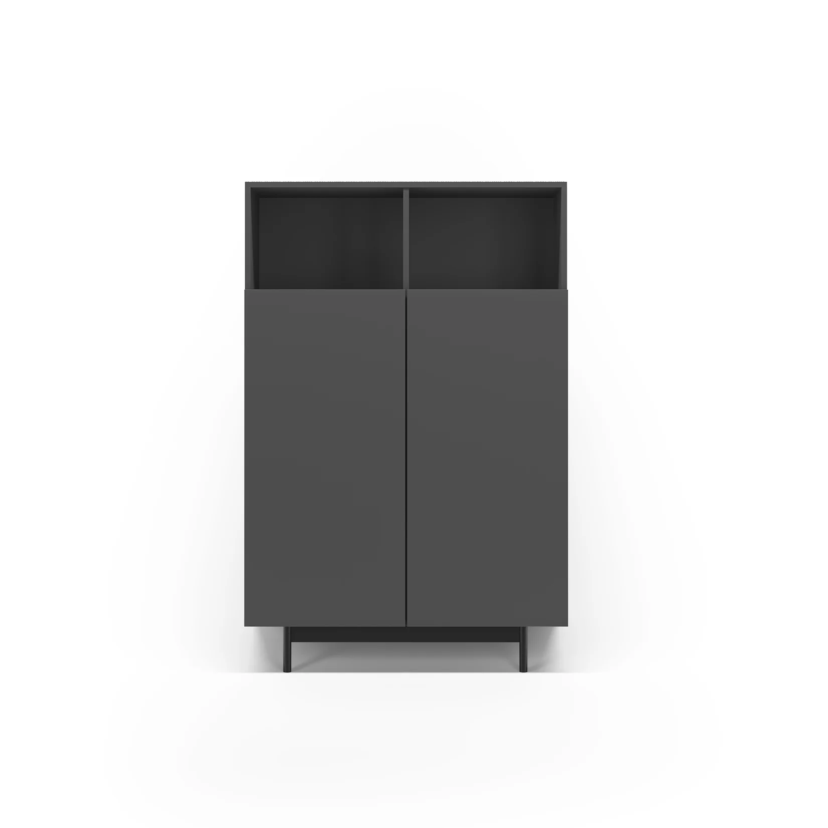 Mueble multifunción fabricado en melamina con patas en metal lacadas. La amplia gama de combinaciones posibles que ofrece este modelo lo hacen un elemento esencial para personalizar cada espacio. Su versatilidad y diseño permite adaptarlo a diferentes necesidades como mueble de entrada, de almacenamiento, zapatero, entre otros usos.