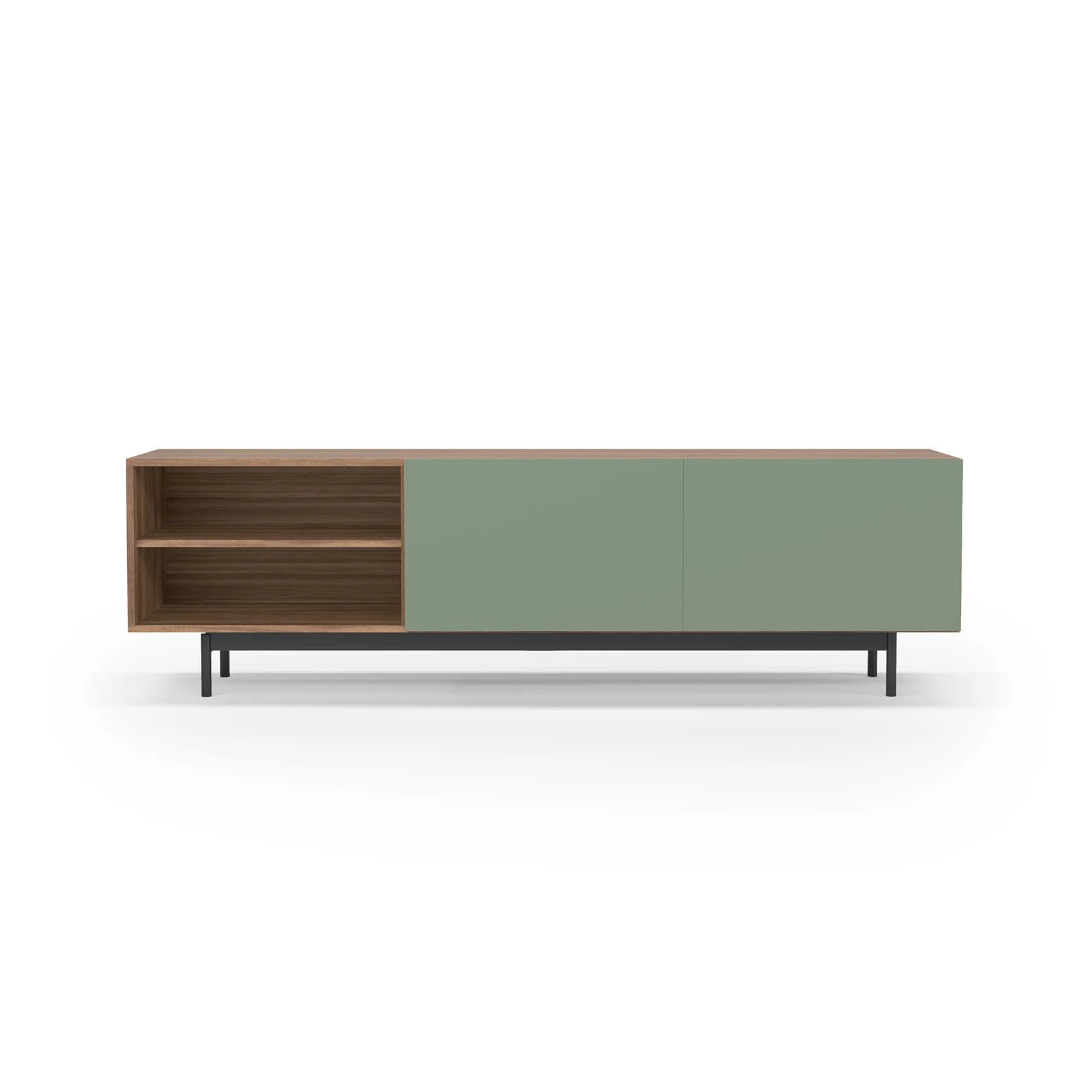 Módulo de TV fabricado en melamina con patas metálicas. Múltiples composiciones y acabados te permitirán adaptarlo a tus necesidades sin perder el estilo. Combínalo con los aparadores de la misma colección para crear un ambiente acogedor y elegante.