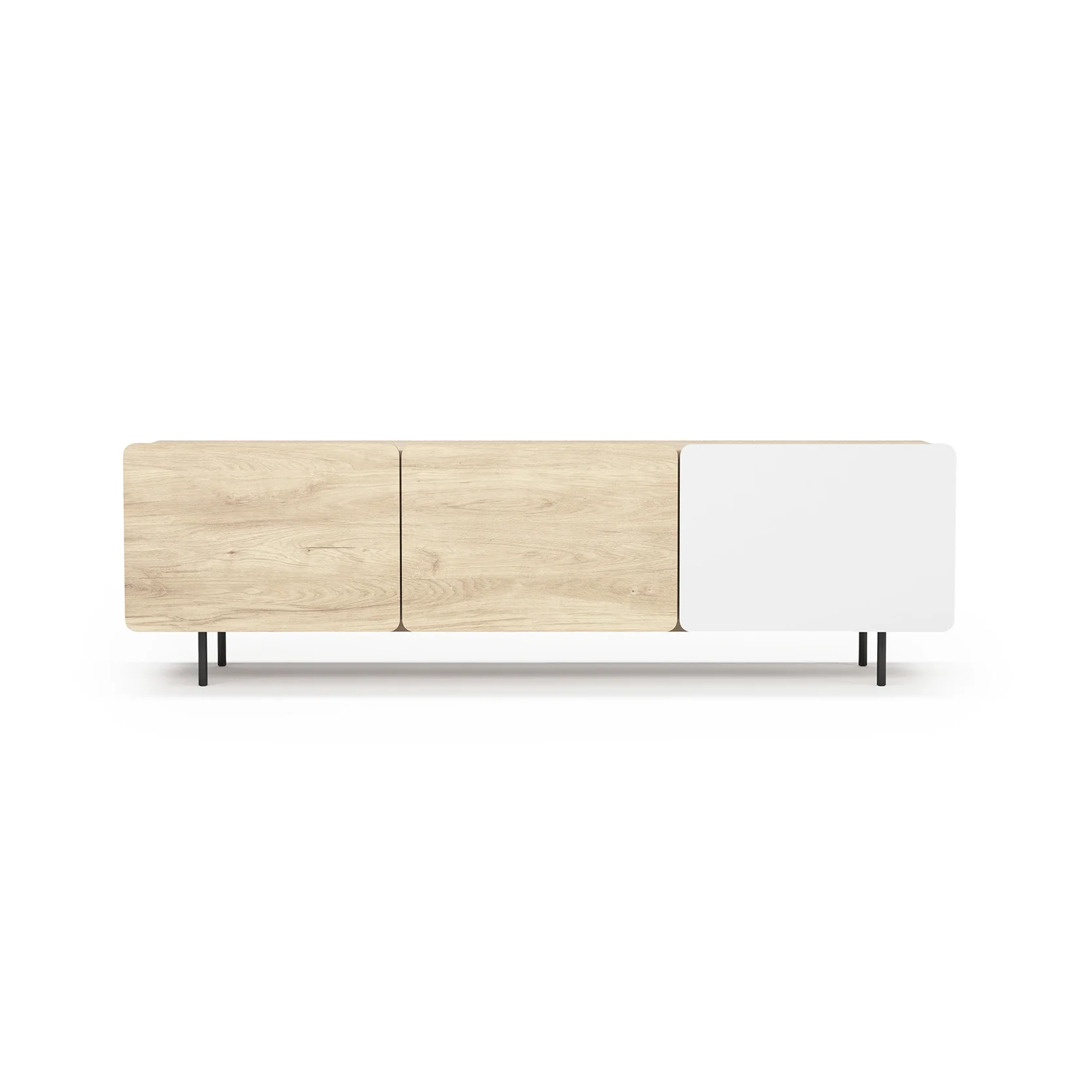 Módulo de TV fabricado en melamina con patas metálicas. Múltiples composiciones y acabados te permitirán adaptarlo a tus necesidades sin perder el estilo. Combínalo con los aparadores de la misma colección para crear un ambiente acogedor y elegante.