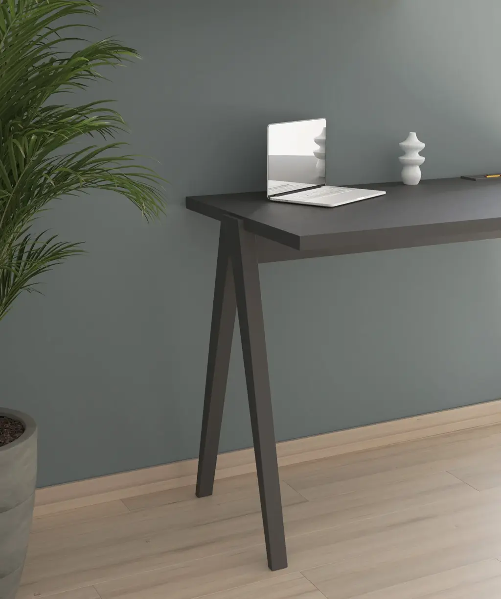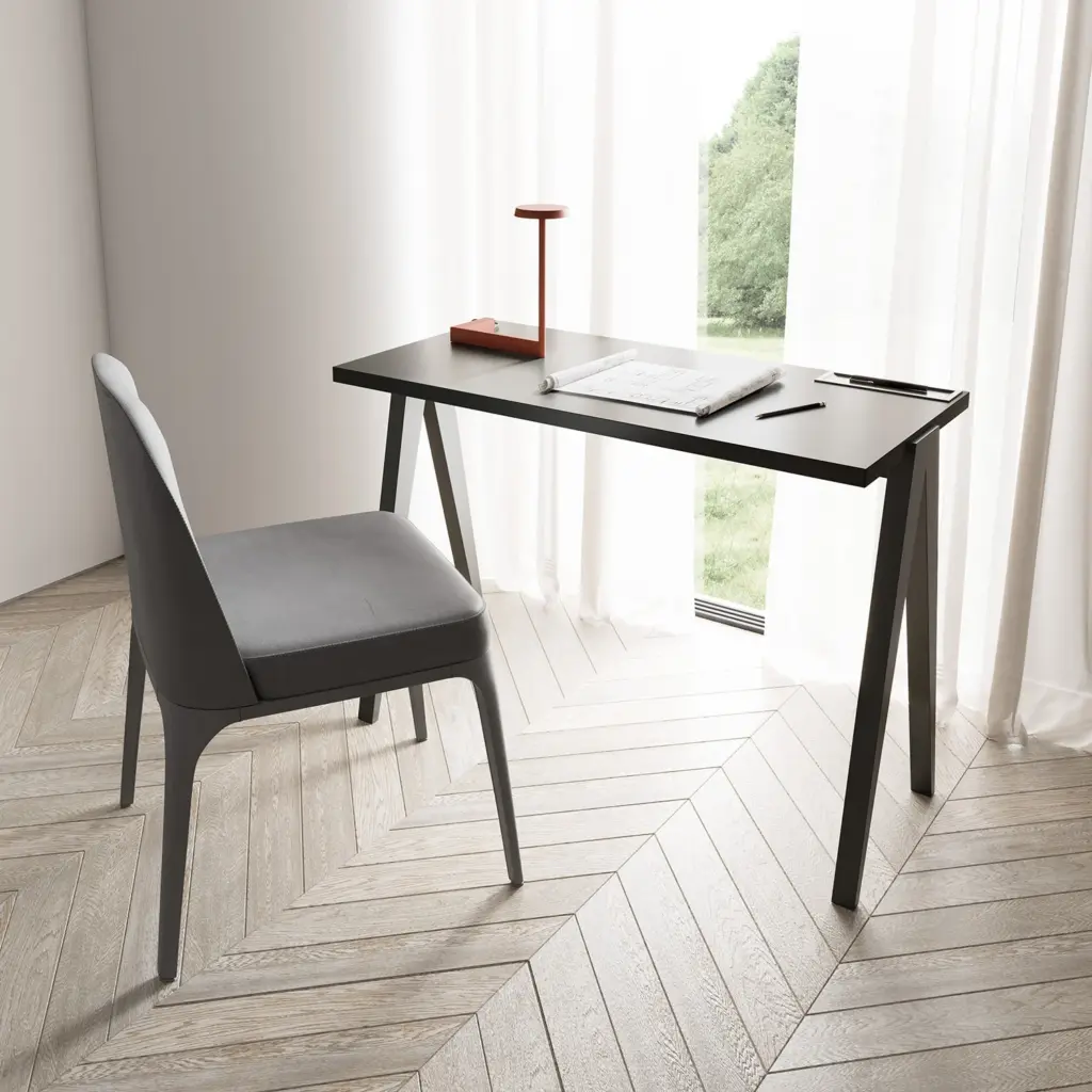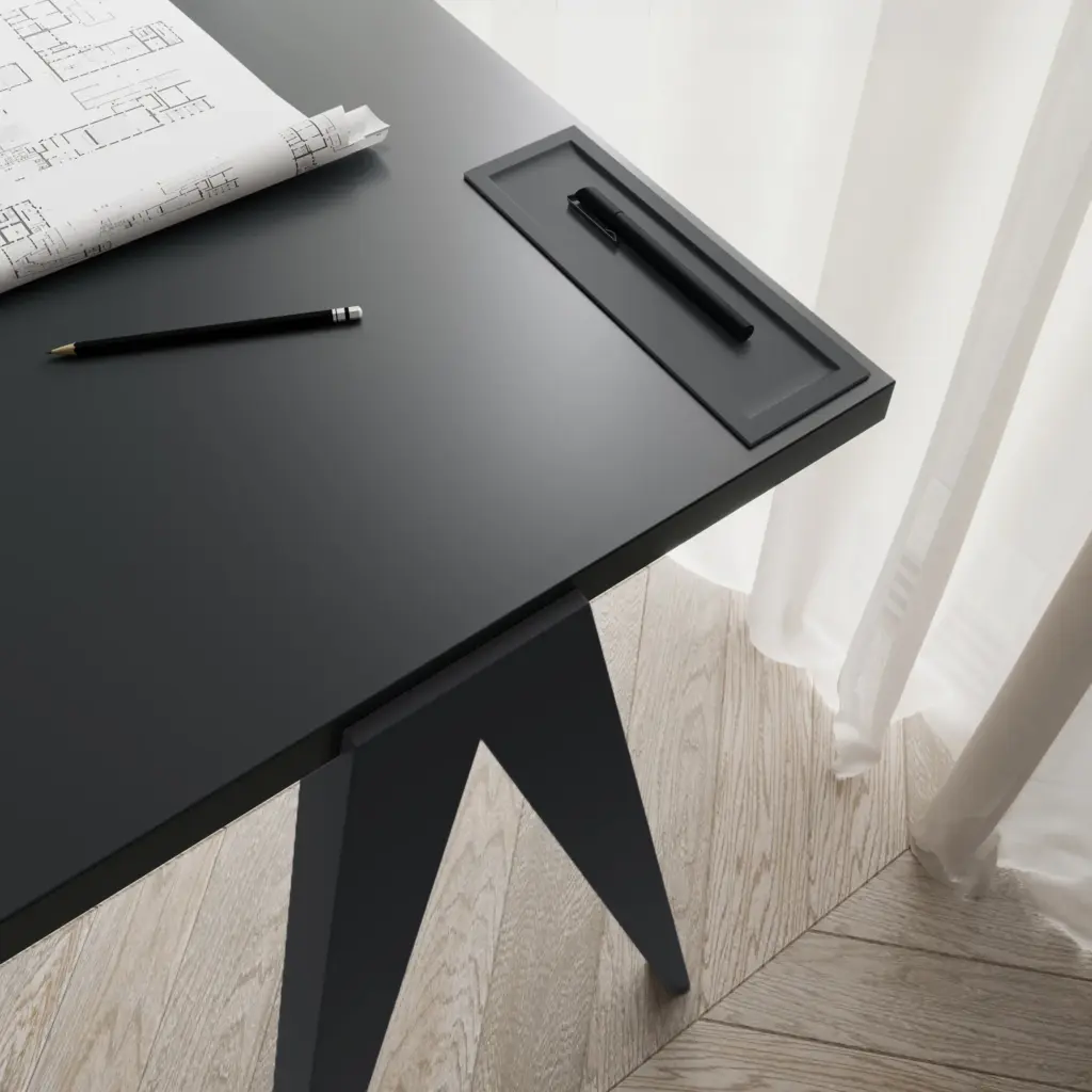 Mesa de estudio sencilla fabricada en melamina y madera de haya. Su amplia tapa dispone de un pequeño portalápices el cual se laca junto a las patas en cualquiera de nuestros colores. Atractivo diseño que, gracias a sus infinitas posibilidades, se adaptará a cualquier ambiente, ya sea en un dormitorio juvenil o en un despacho general.