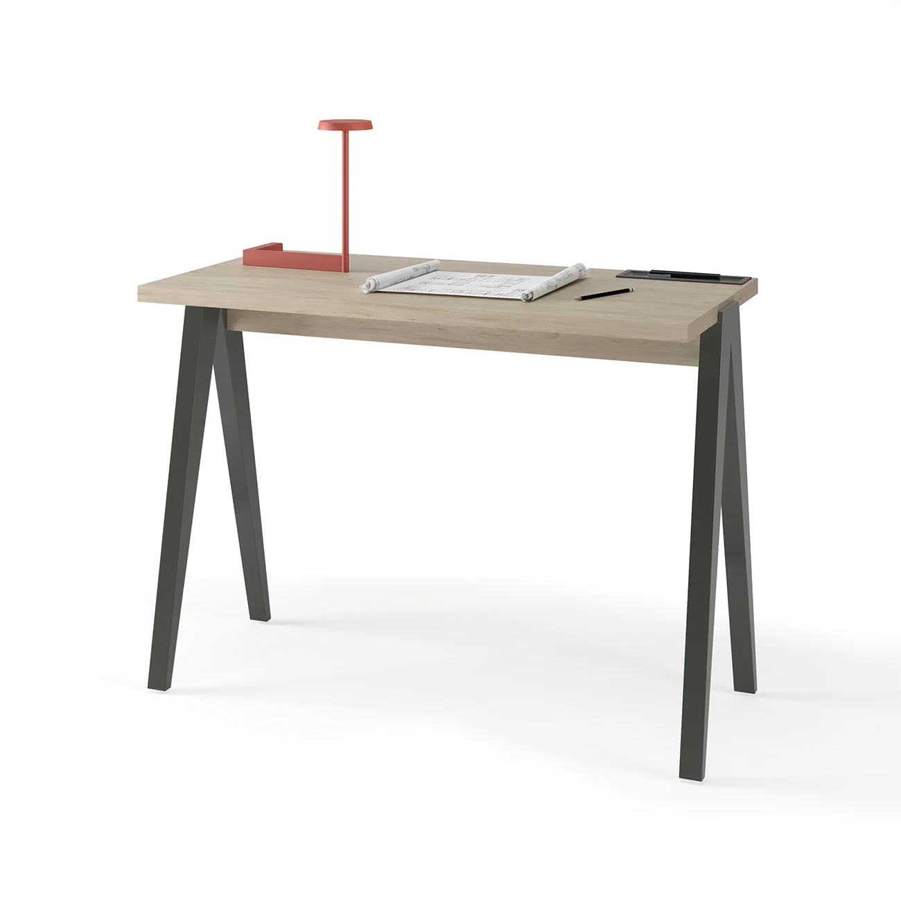 Mesa de estudio sencilla fabricada en melamina y madera de haya. Su amplia tapa dispone de un pequeño portalápices el cual se laca junto a las patas en cualquiera de nuestros colores. Atractivo diseño que, gracias a sus infinitas posibilidades, se adaptará a cualquier ambiente, ya sea en un dormitorio juvenil o en un despacho general.