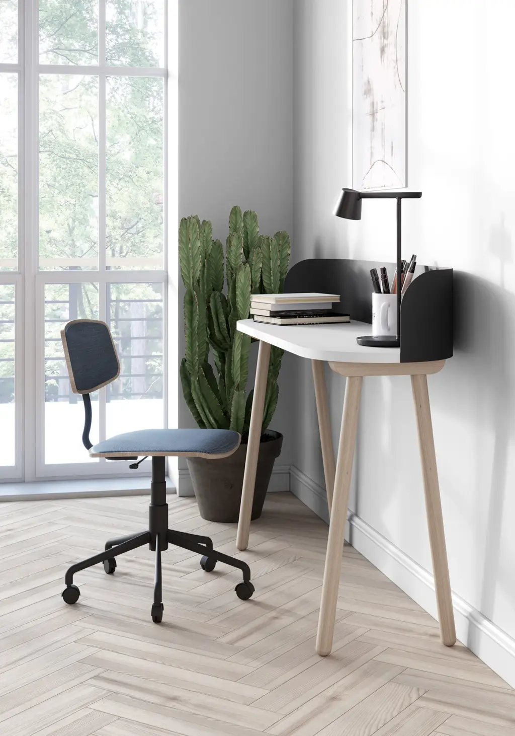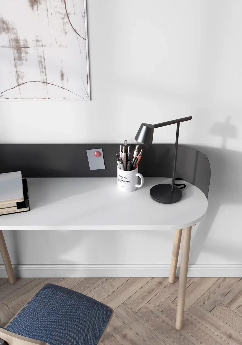 Mesa de estudio sencilla fabricada en melamina, haya maciza y metal. Su amplia tapa dispone de un panel metálico donde podrás pegar tus notas con imanes. Su estilo neutro y sus infinitas posibilidades de color permite adaptarlo a múltiples espacios, ya sea en un dormitorio juvenil o en un despacho general.