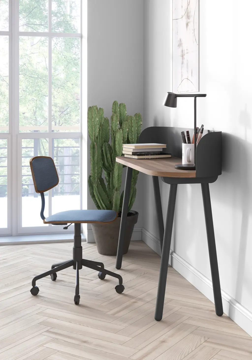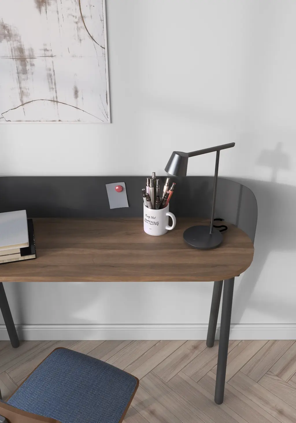 Mesa de estudio sencilla fabricada en melamina, haya maciza y metal. Su amplia tapa dispone de un panel metálico donde podrás pegar tus notas con imanes. Su estilo neutro y sus infinitas posibilidades de color permite adaptarlo a múltiples espacios, ya sea en un dormitorio juvenil o en un despacho general.