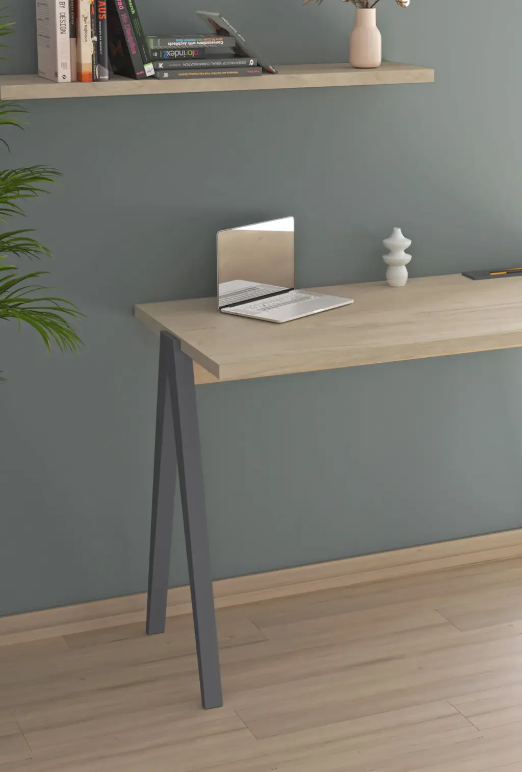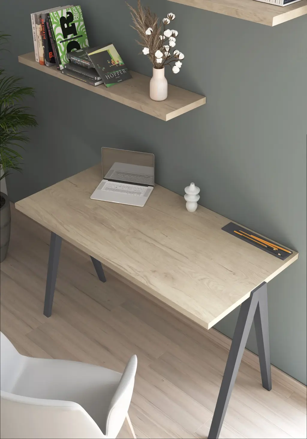 Mesa de estudio sencilla fabricada en melamina y madera de haya. Su amplia tapa dispone de un pequeño portalápices el cual se laca junto a las patas en cualquiera de nuestros colores. Atractivo diseño que, gracias a sus infinitas posibilidades, se adaptará a cualquier ambiente, ya sea en un dormitorio juvenil o en un despacho general.