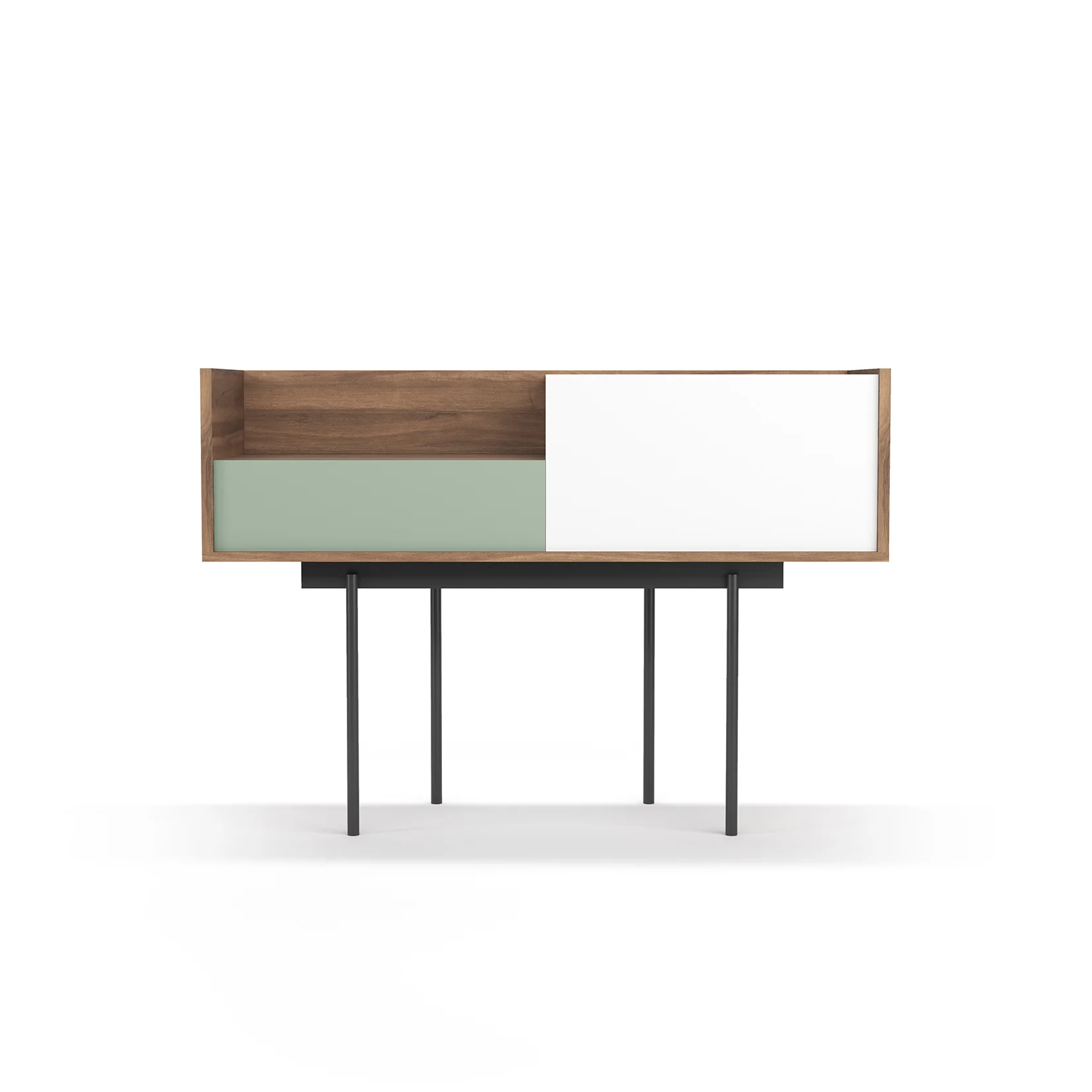 Aparador fabricado en melamina con patas metálicas. Diseño asimétrico en líneas rectas que dará ese toque elegante y distintivo a tu hogar. Los diferentes acabados disponibles te permitirán adaptarlo a tu estilo propio.