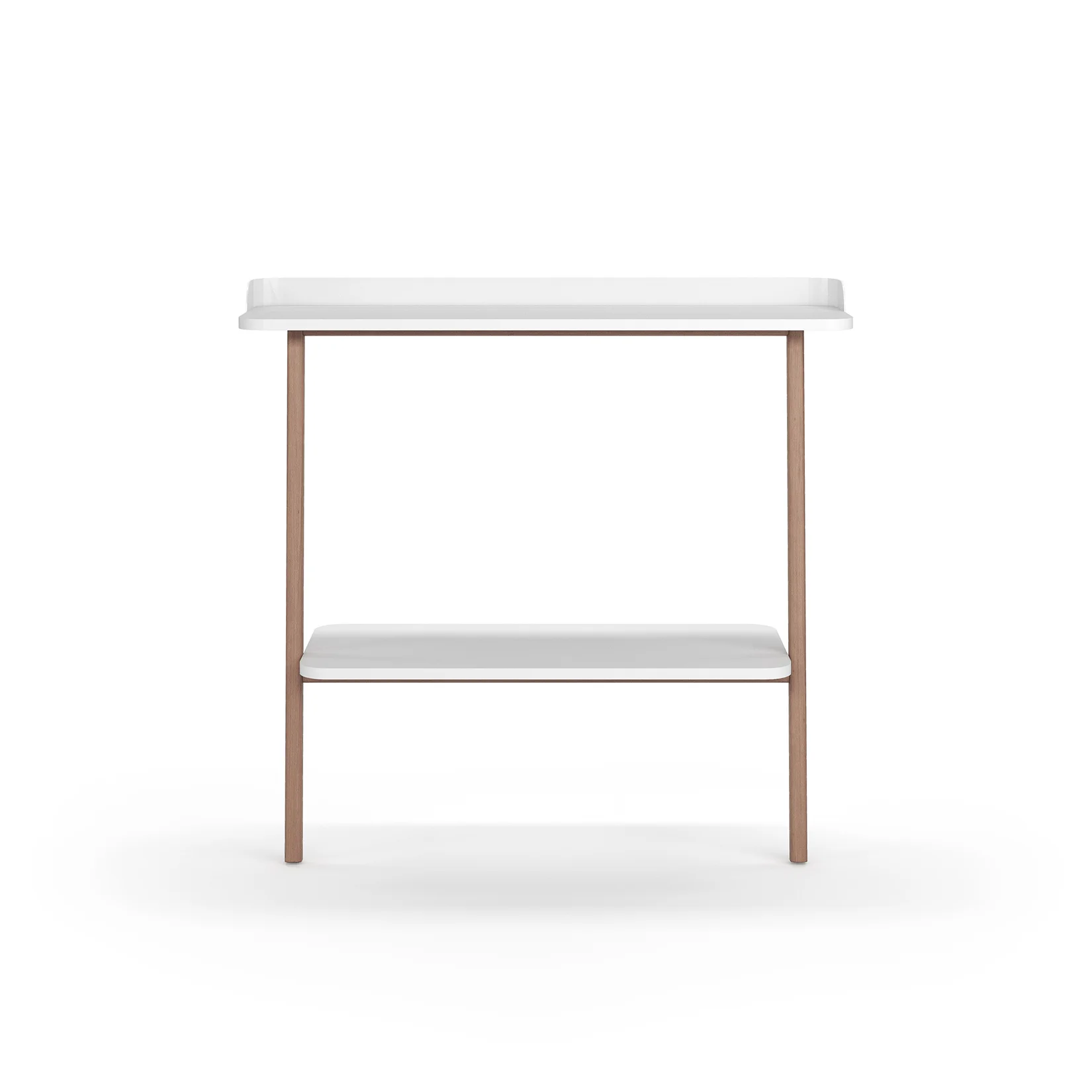 Consola fabricada en melamina y madera de haya con detalle metálico. Su diseño original y minimalista junto con las infinitas opciones de acabado disponibles, permitirán que la adaptes a tu propio estilo sin perder su funcionalidad. Sistema de fijación a la pared incluido.
