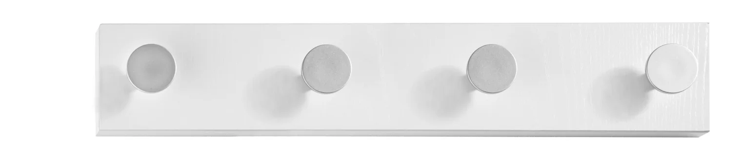 Percha de pared fabricada melamina y 4 colgadores en cromo satinado. Diseño sencillo que podrás adaptar a tu estilo. Elge un color vivo para dar un toque moderno, o un color madera para un ambiente más clásico.