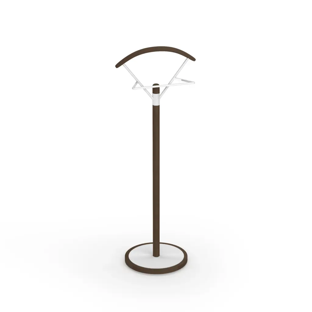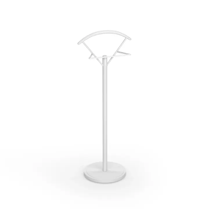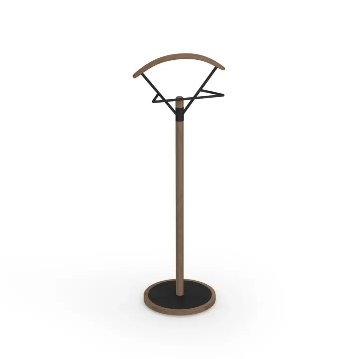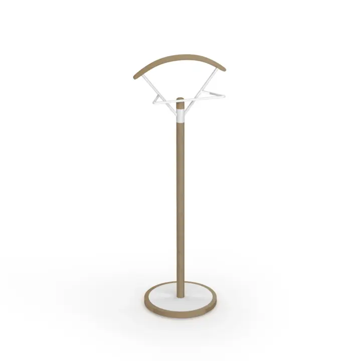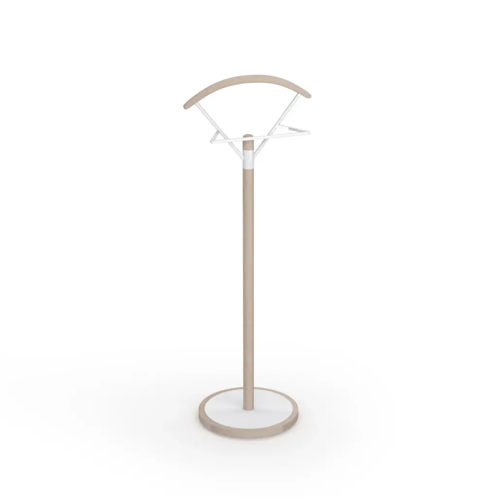 Galán de noche fabricado en madera de haya con base circular en MDF y pantalonera de metal lacado. Este galán con su diseño sencillo y estilizado aportará funcionalidad y un toque moderno que podrás adaptar al estilo del dormitorio gracias a la infinidad de colores disponibles.