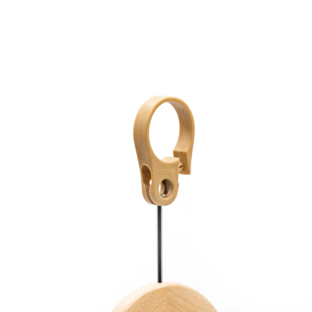 Percha de armario de madera maciza con forma curvada. Múltiples opciones disponibles tanto de color como de accesorios: puedes añadirle pinzas de resina o de metal, hacerle hendidura o ponerle anilla antirrobo. Además la podrás personalizar completamente incluyendo tu logo serigrafiado. El packaging es de 40 unidades.
