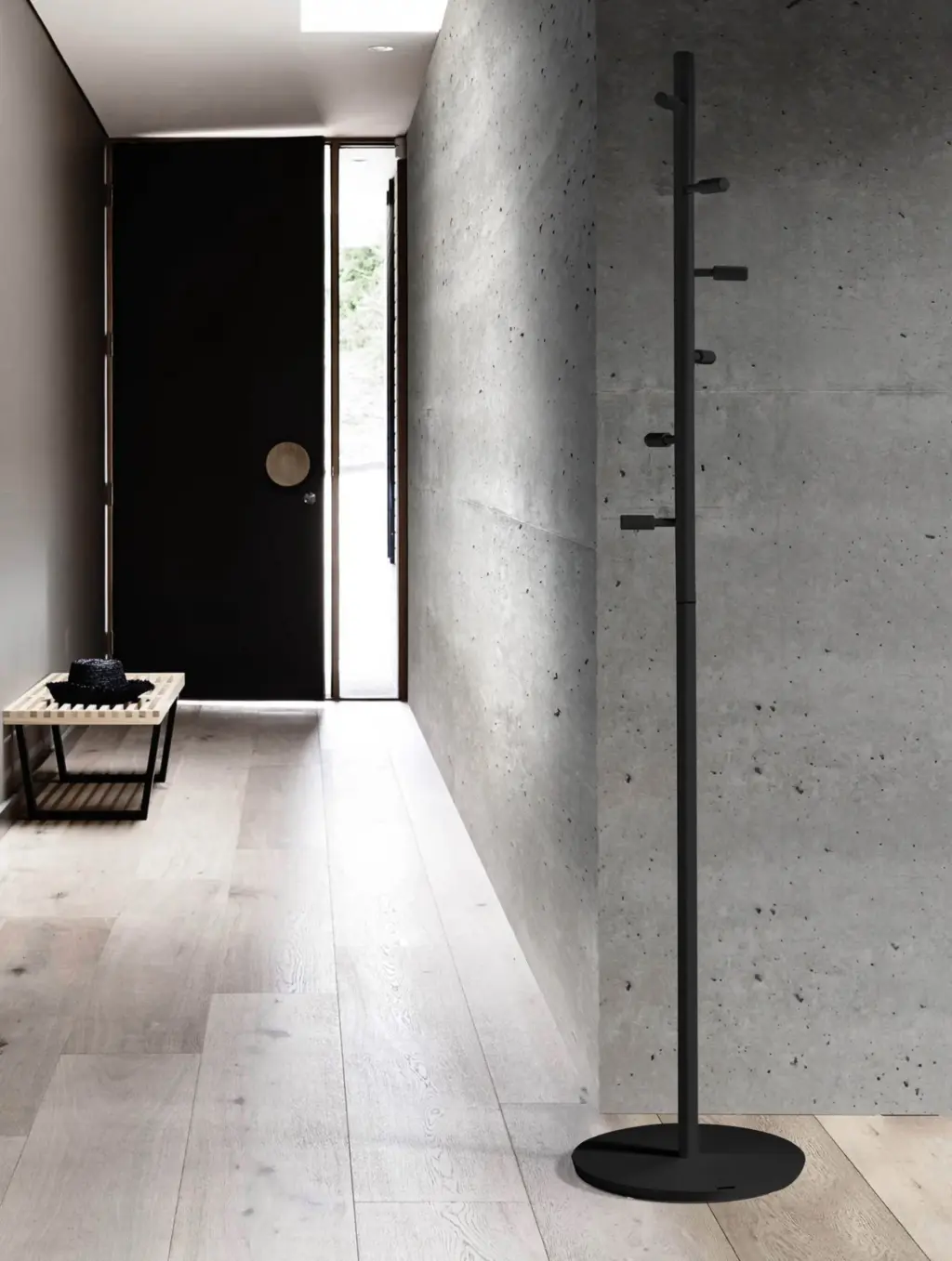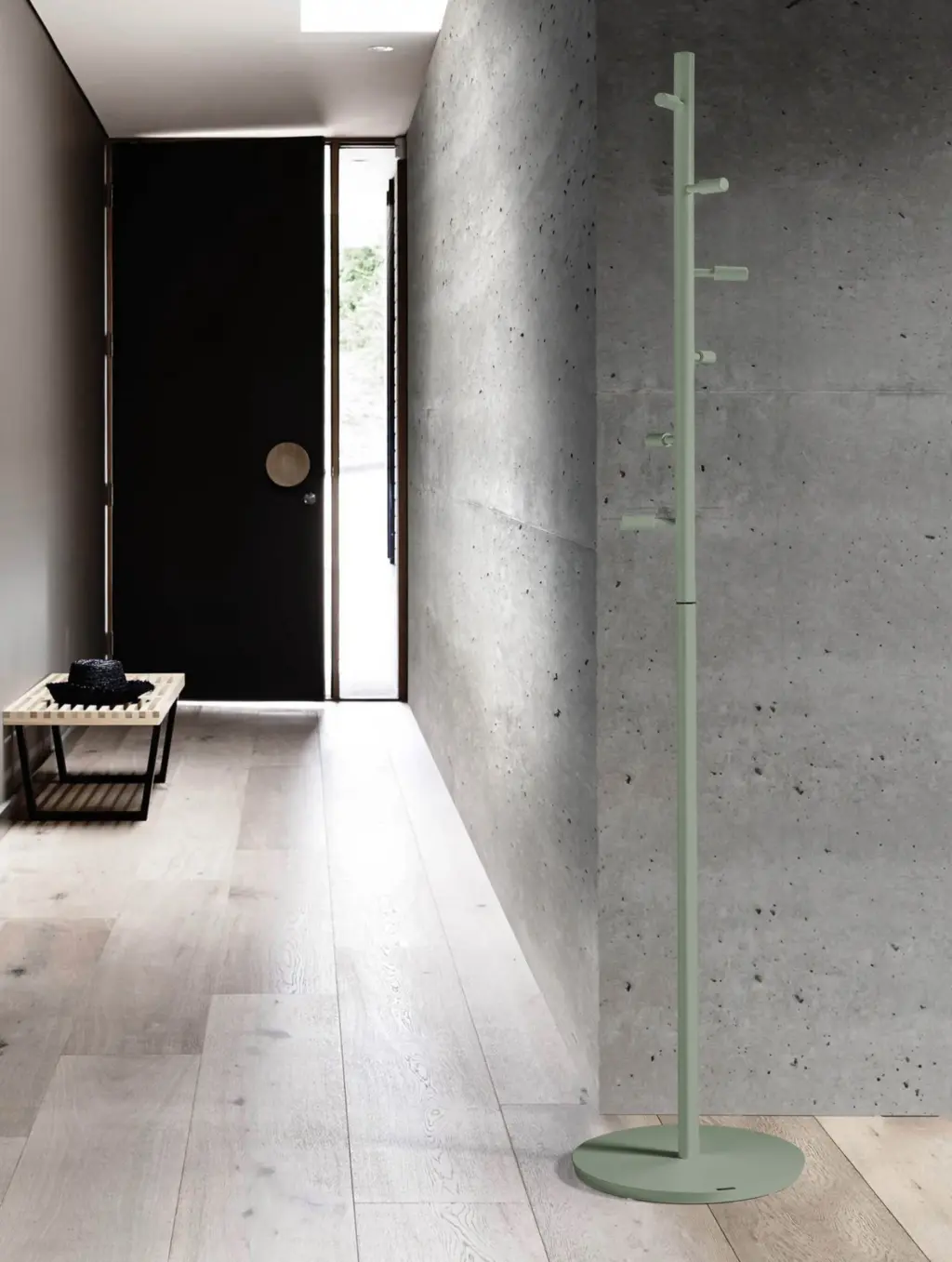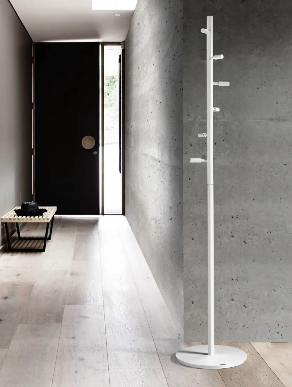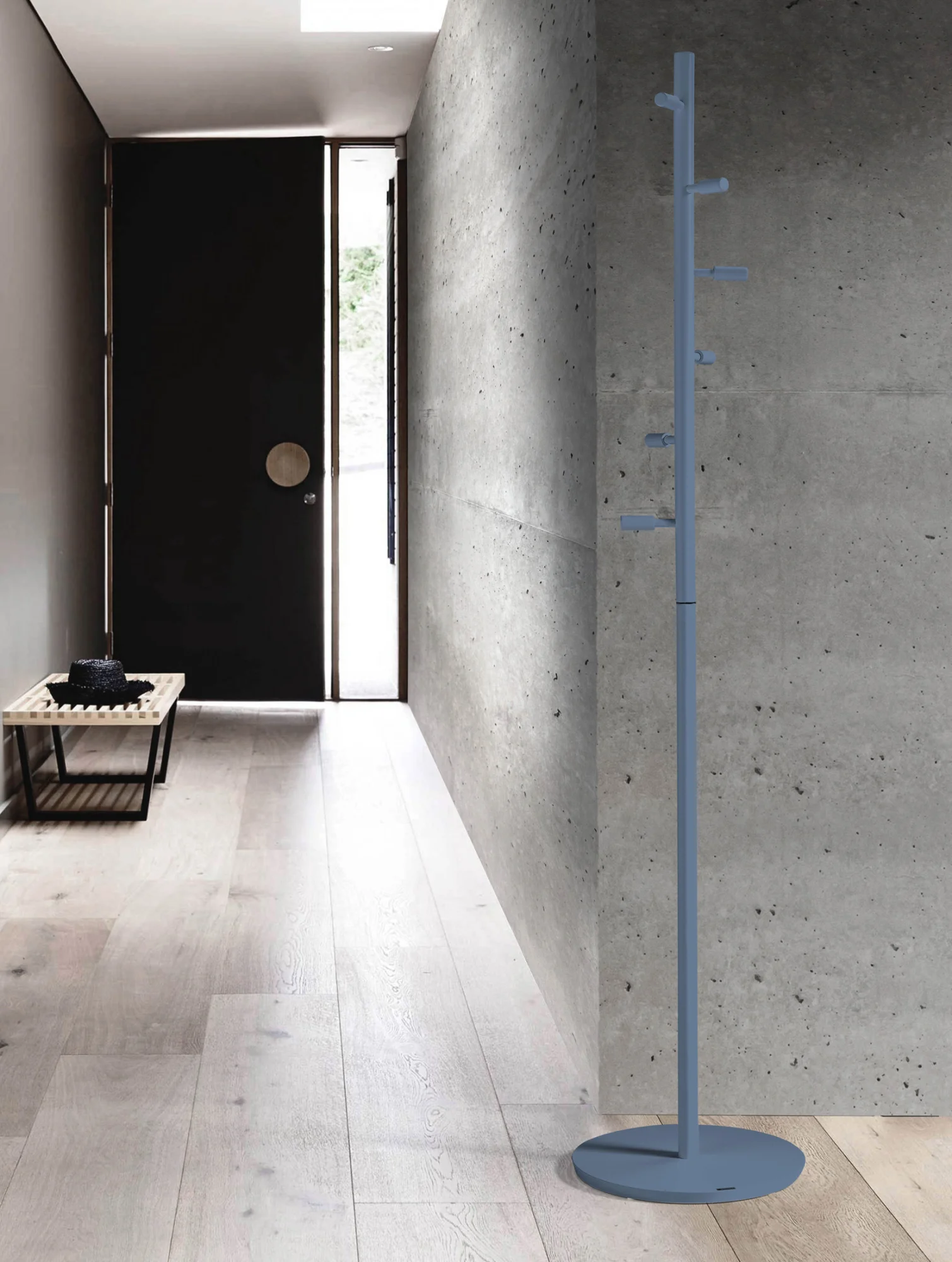 Perchero de pie fabricado en madera de haya con 6 colgadores cilíndricos. Diseño sencillo pero práctico que podrás personalizar gracias a nuestra gran variedad de acabados disponibles. Es el accesorio perfecto para la entrada, el dormitorio o incluso la oficina.