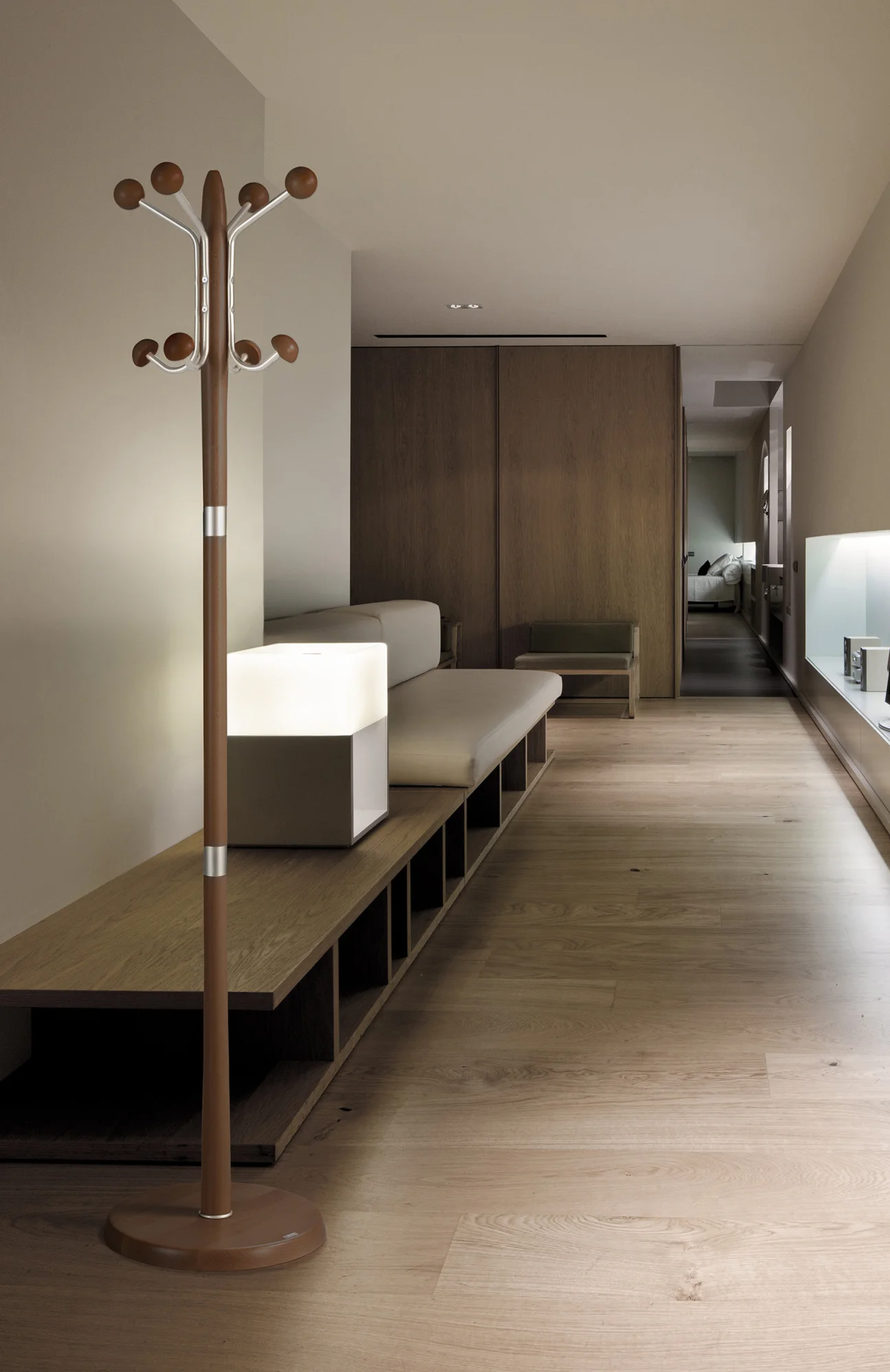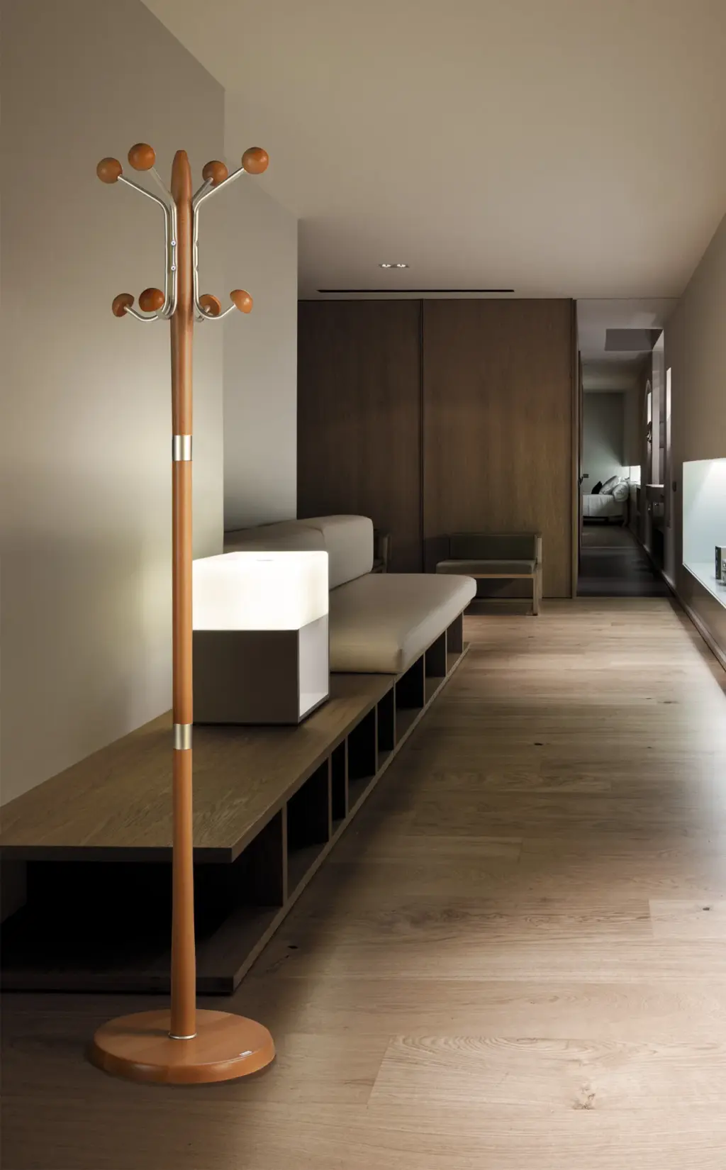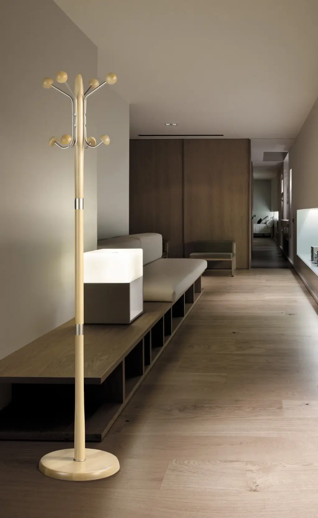 Perchero fabricado en madera de haya con detalles en metal cromado. Los 8 colgadores redondos permiten colocar prendas y accesorios con facilidad. Configúralo en el color que mejor se adapte a tu estilo, eligiendo entre nuestra amplia gama de acabados.