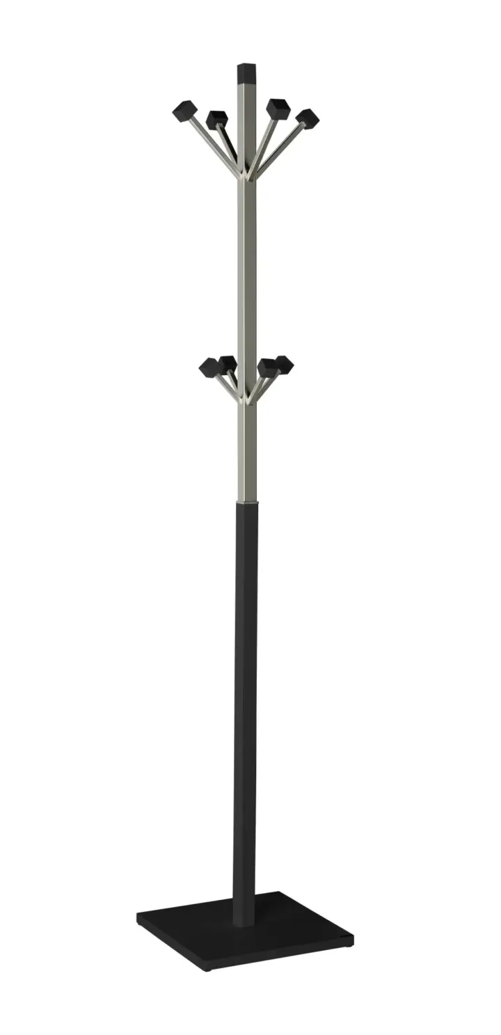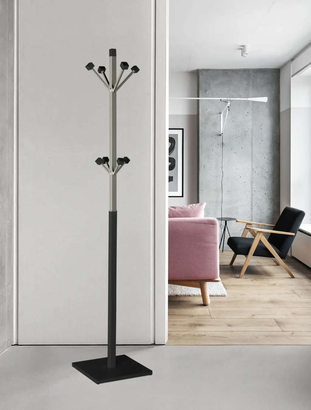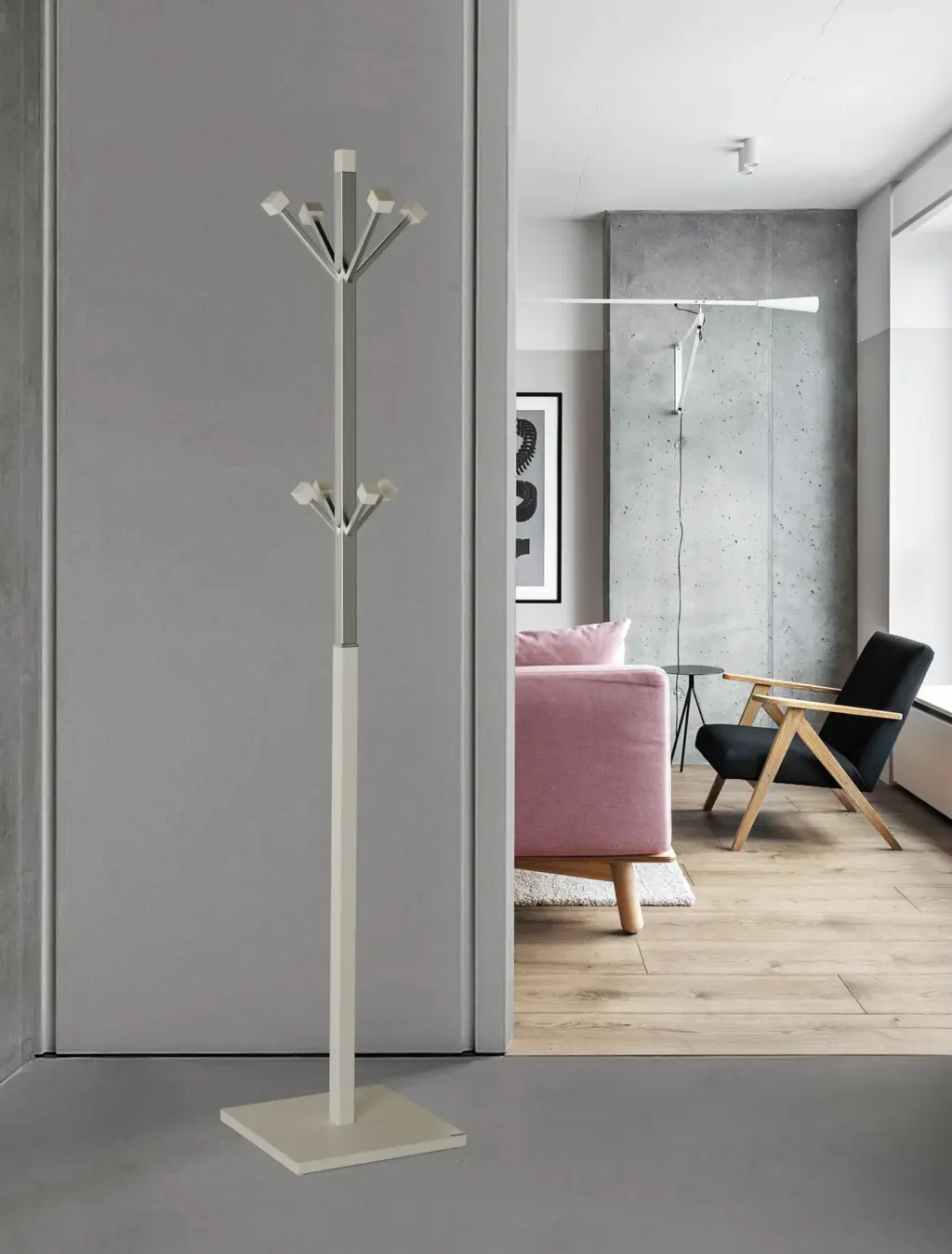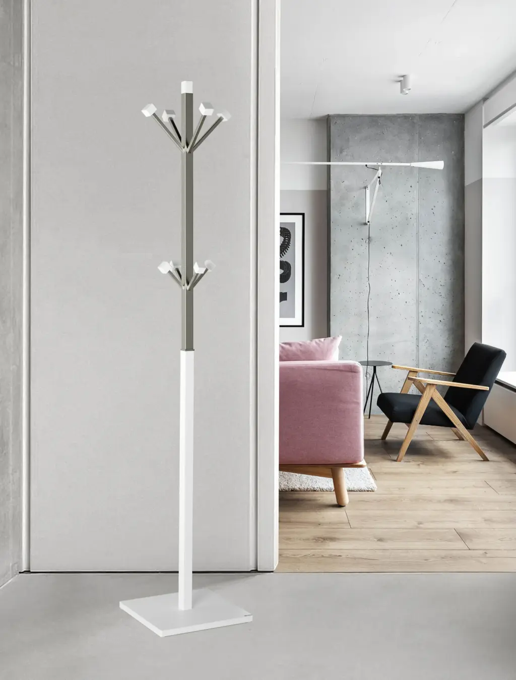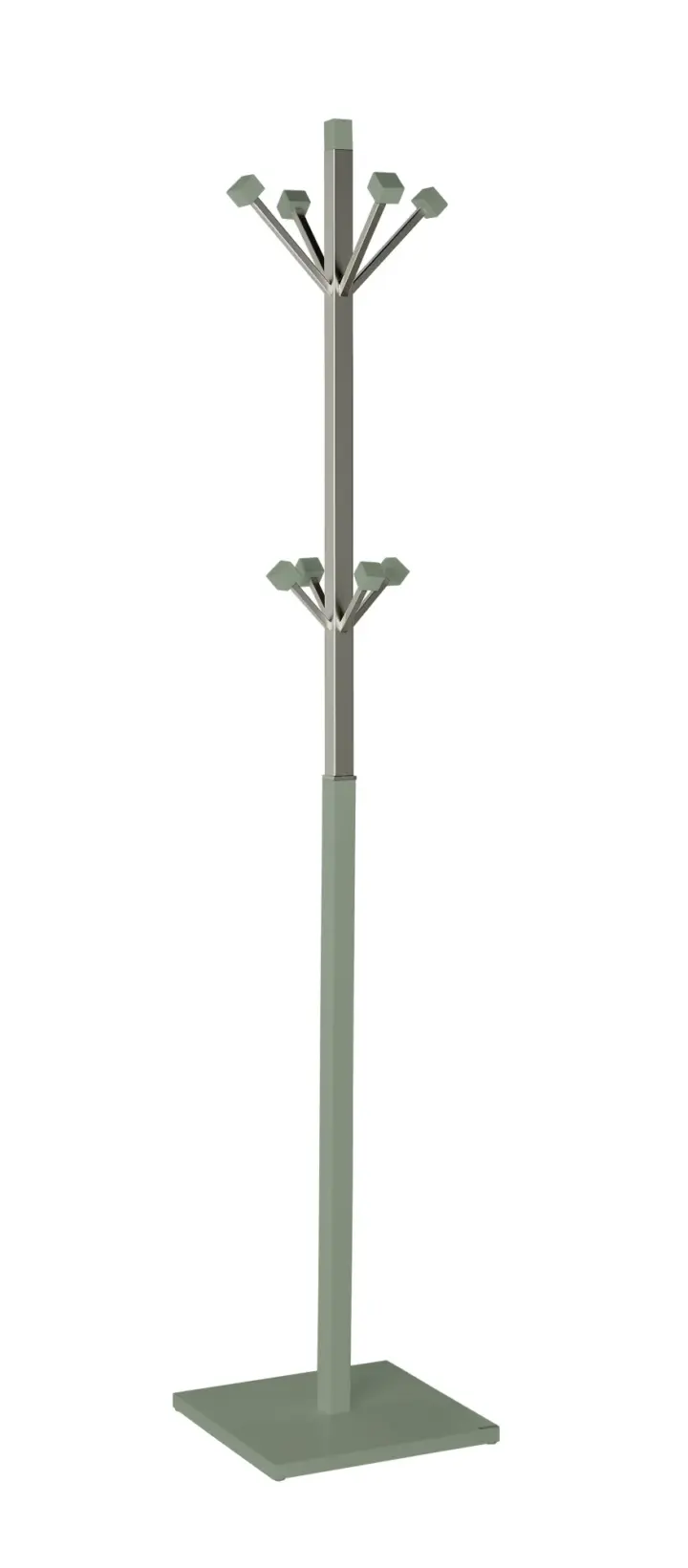 Perchero fabricado en madera de haya y metal cromado. Original diseño en líneas rectas que podrás personalizar dándole el color que mejor se adapte a tus necesidades. Los 8 colgadores le dan la funcionalidad necesaria para usarlo como complemento en el recibidor, el dormitorio o el despacho.