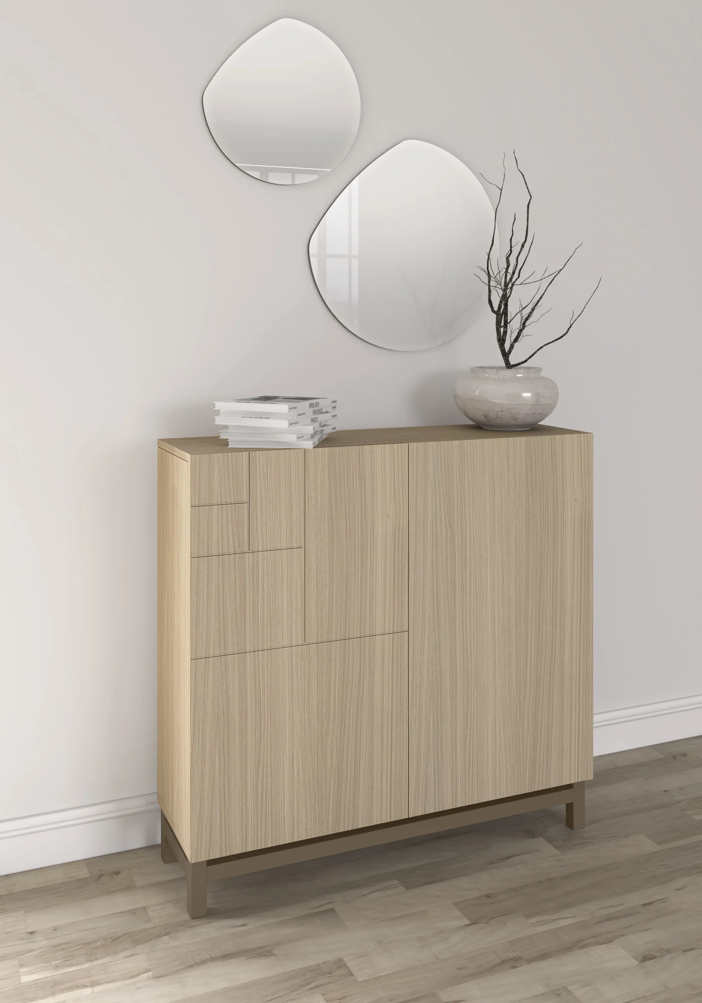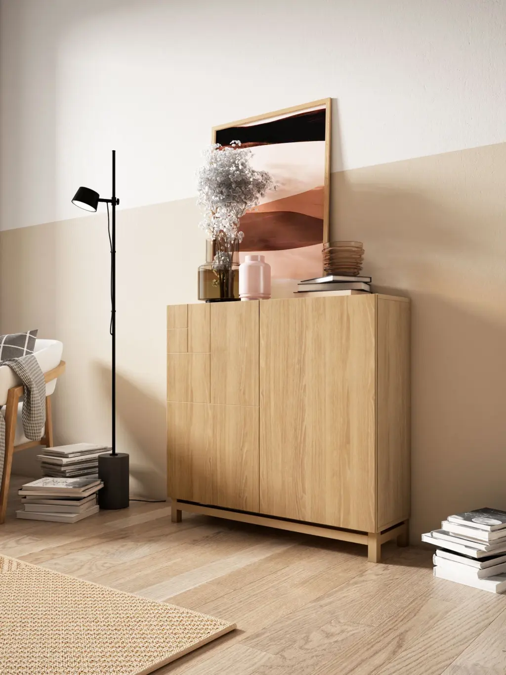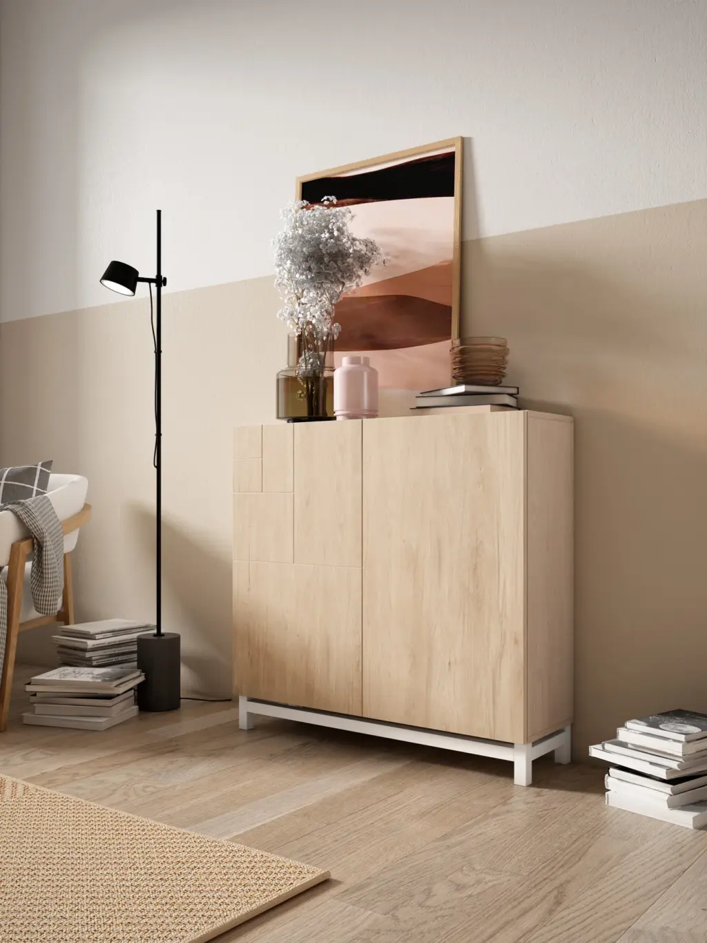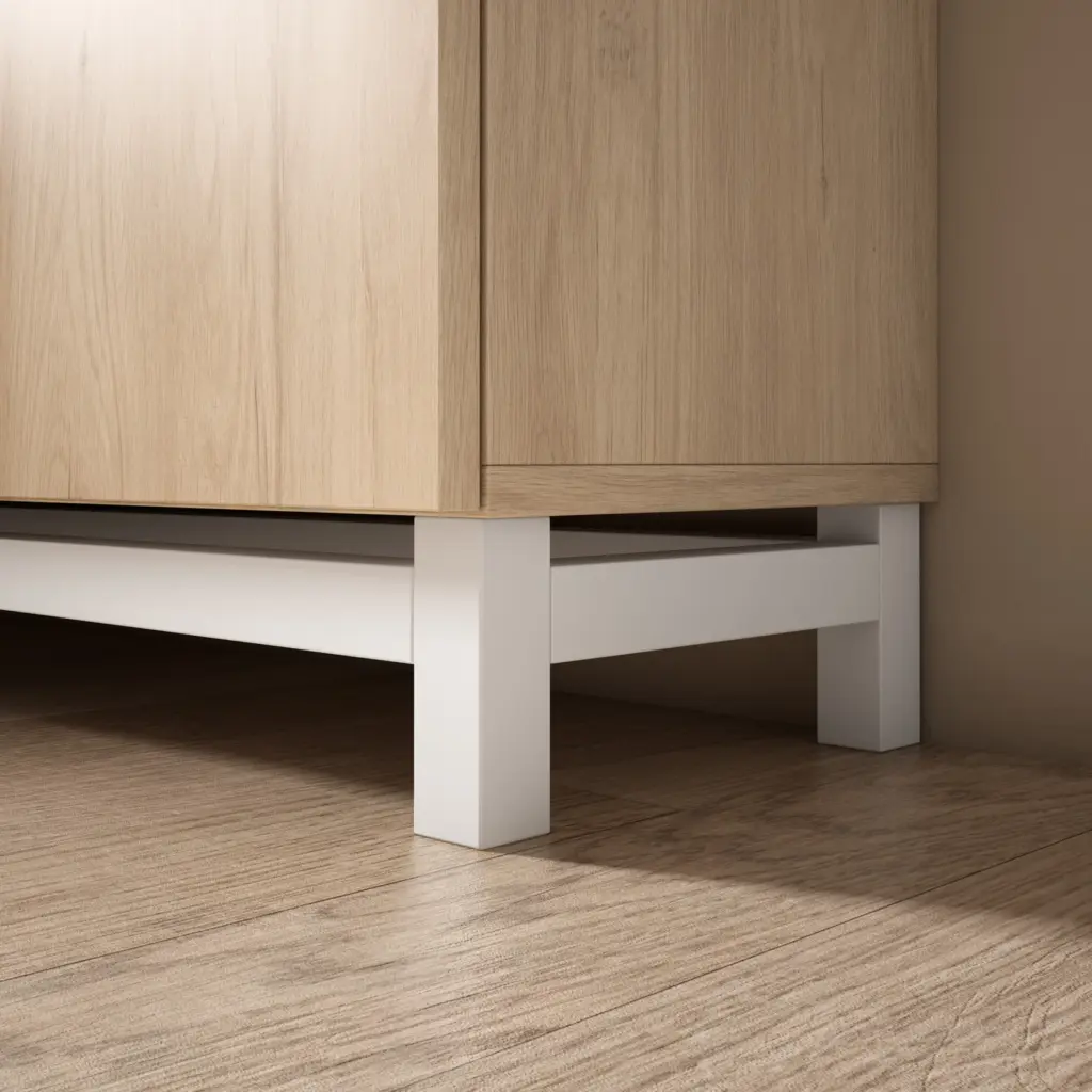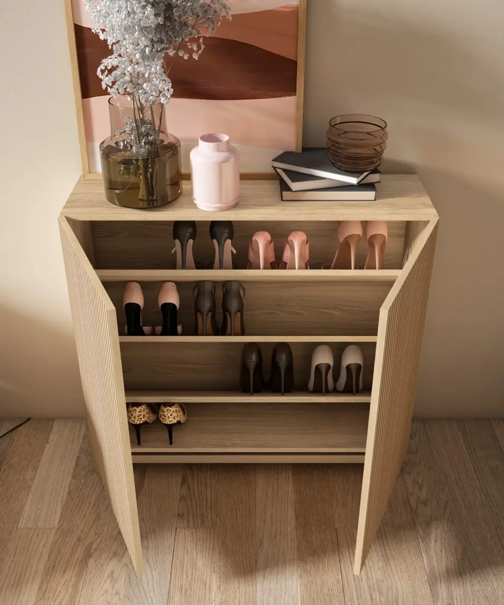 Zapatero fabricado en melamina con patas de madera de haya. El interior se compone de 3 estantes que se pueden posicionar de forma horizontal o inclinada, dependiendo de cada necesidad de almacenamiento. Gracias a su gran variedad de acabados y su multifuncionalidad, se adaptará en infinidad de espacios y permitirá crear un espacio acogedor en cualquier estancia de la casa.