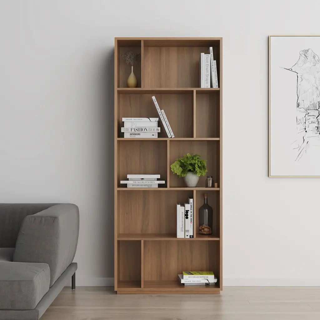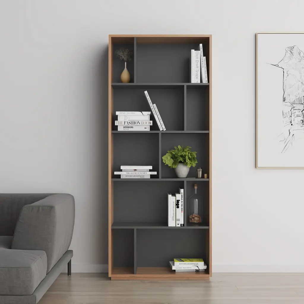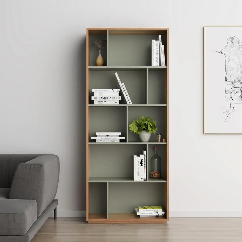 Estantería librería fabricada en melamina con gran capacidad de almacenamiento gracias a los múltiples huecos. El diseño es modular, por lo que se pueden colocar varias librerías juntas, ya sean del mismo modelo o de distinto, dentro de la colección de NACK.