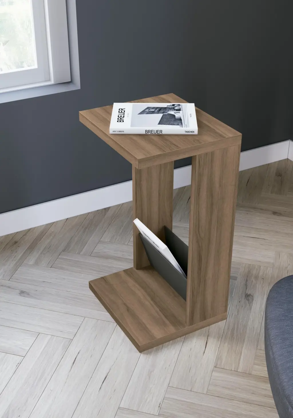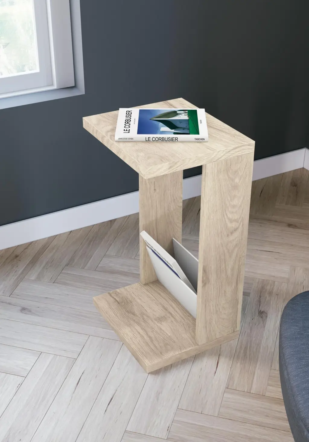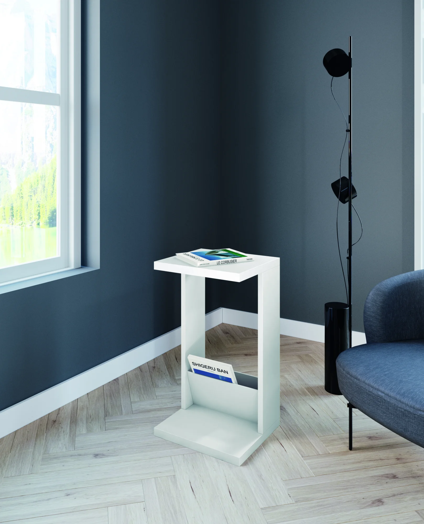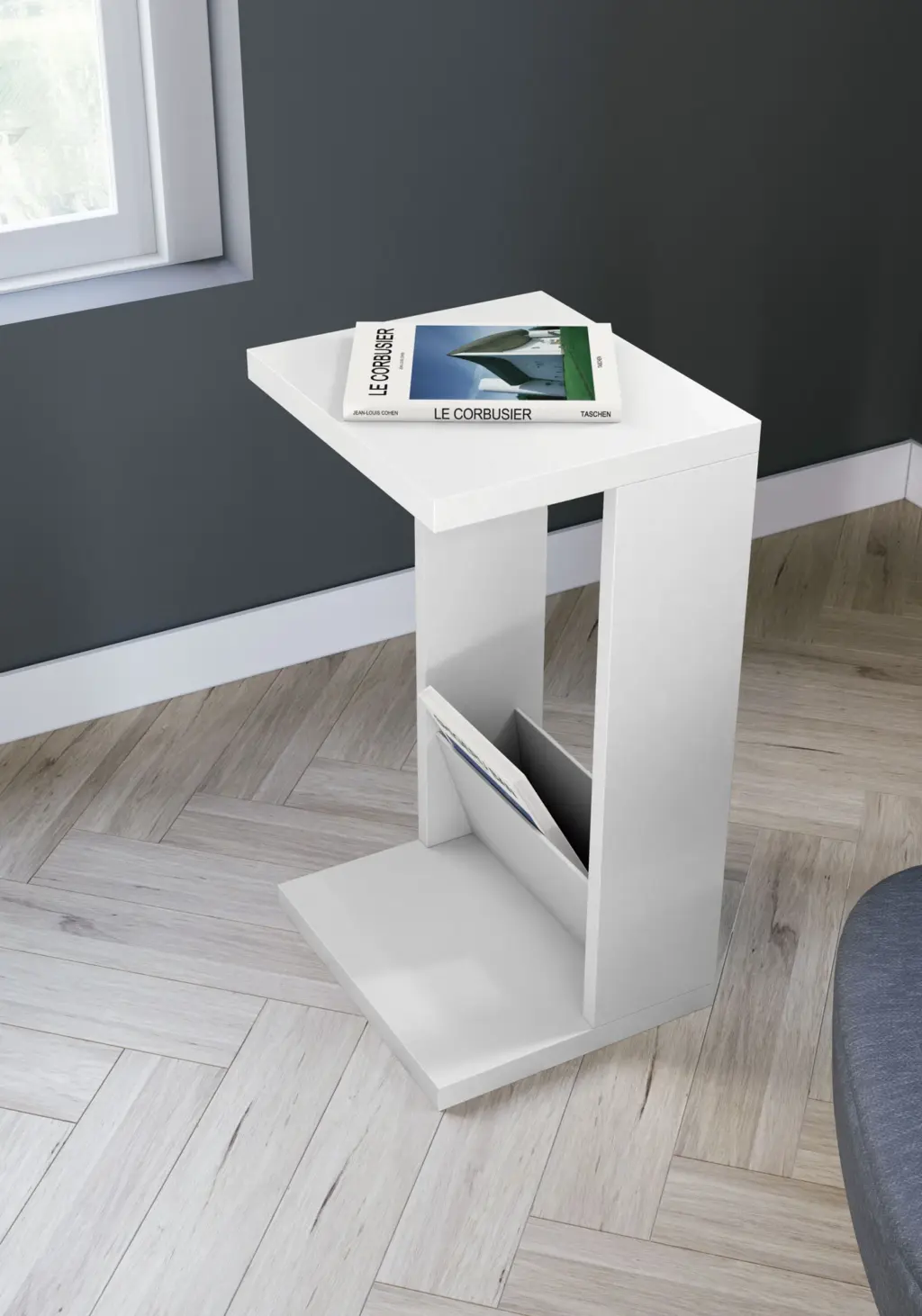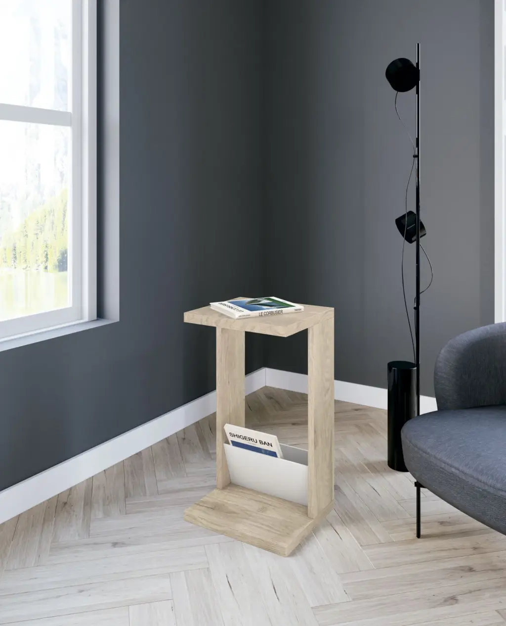 Mesa auxiliar fabricada en melamina con revistero incorporado. El diseño minimalista te permitirá adaptarla en diferentes zonas de tu hogar, desds el salón hasta el dormitorio. Puedes combinar dos colores dándole un toque de color en el revistero, o elegirla en un único color.