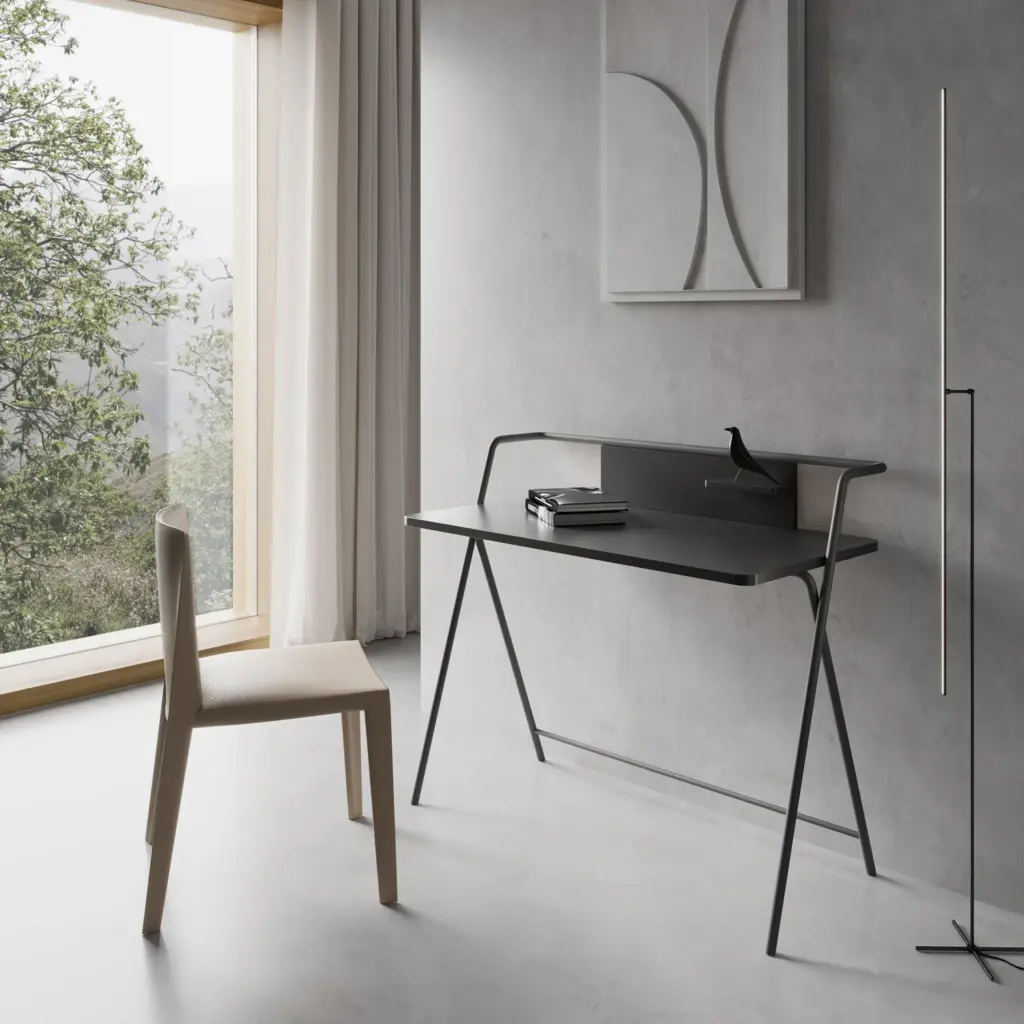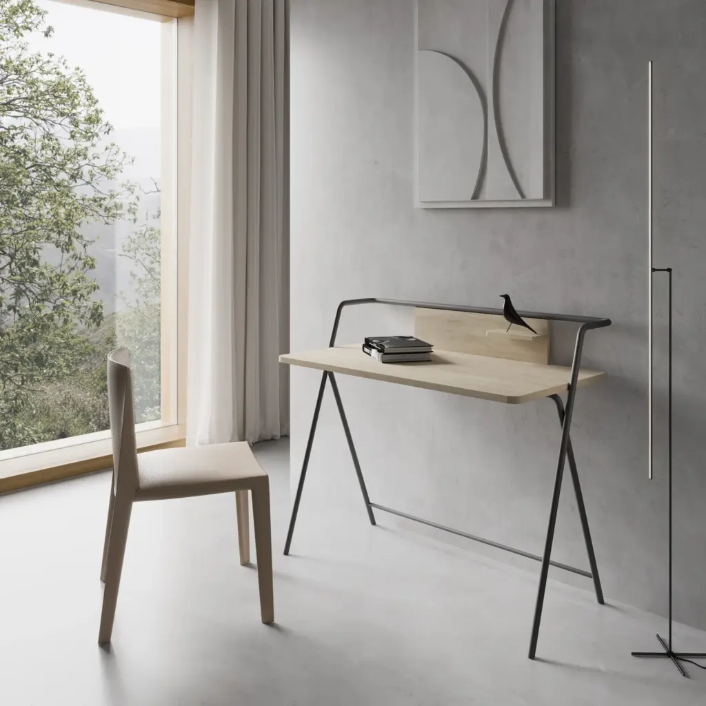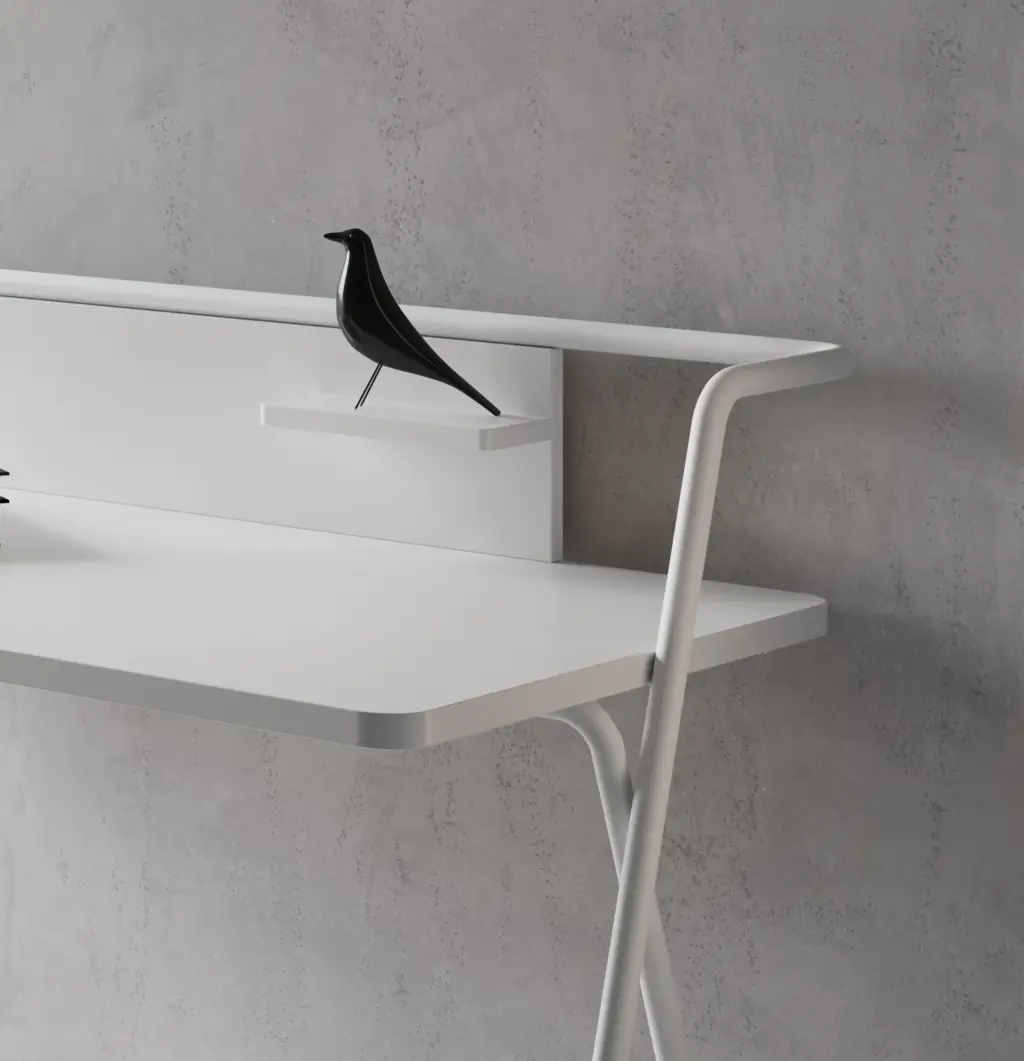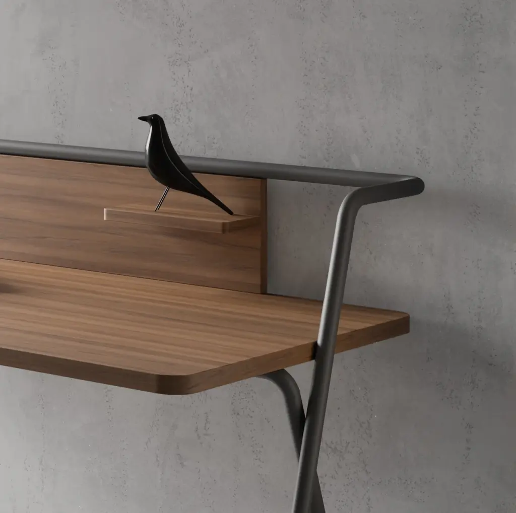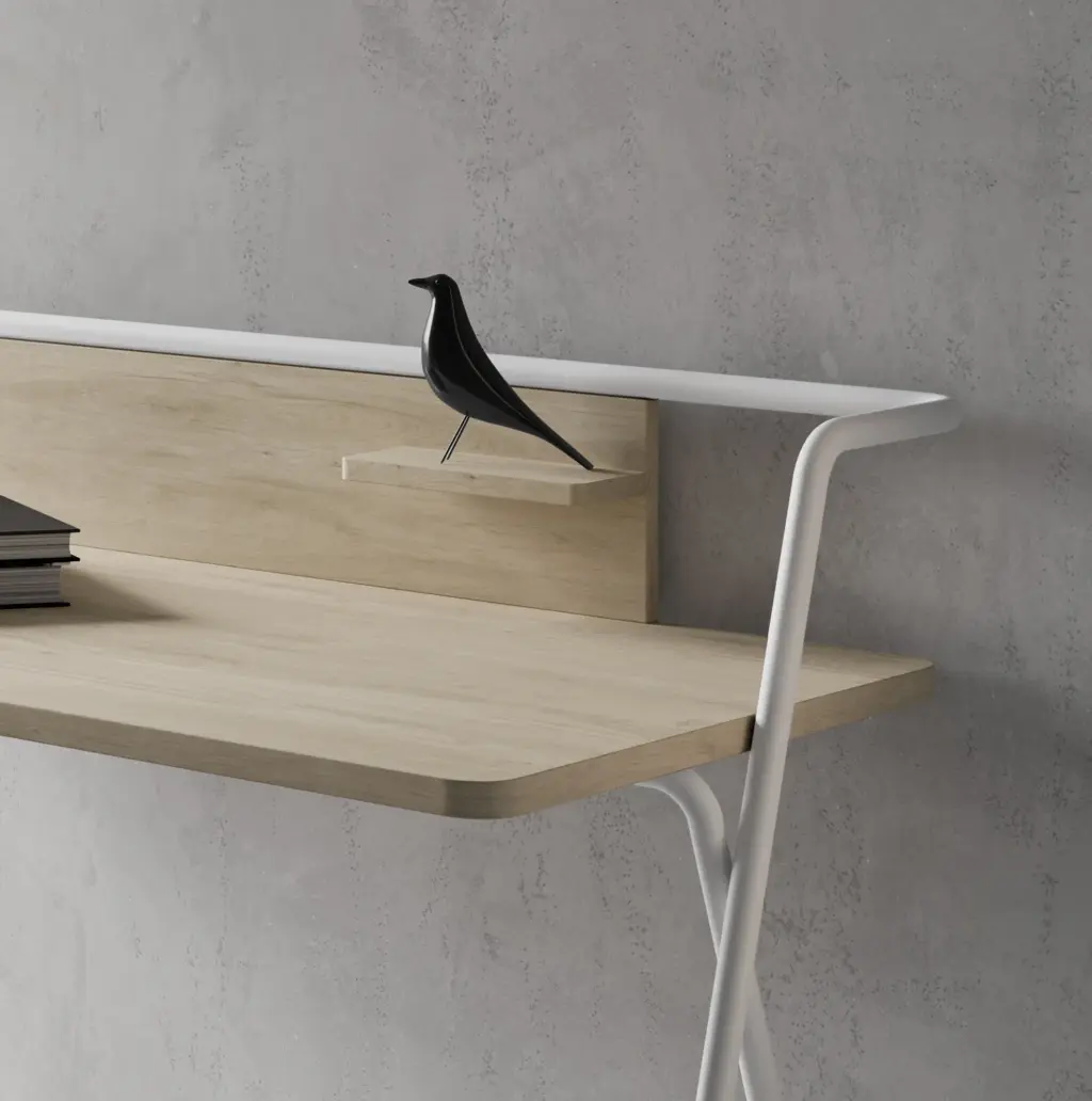 Original mesa de estudio fabricada en melamina y metal. Su atractivo y funcional diseño no solo aportará la practicidad necesaria, sino que dará ese toque singular al espacio que elijas.