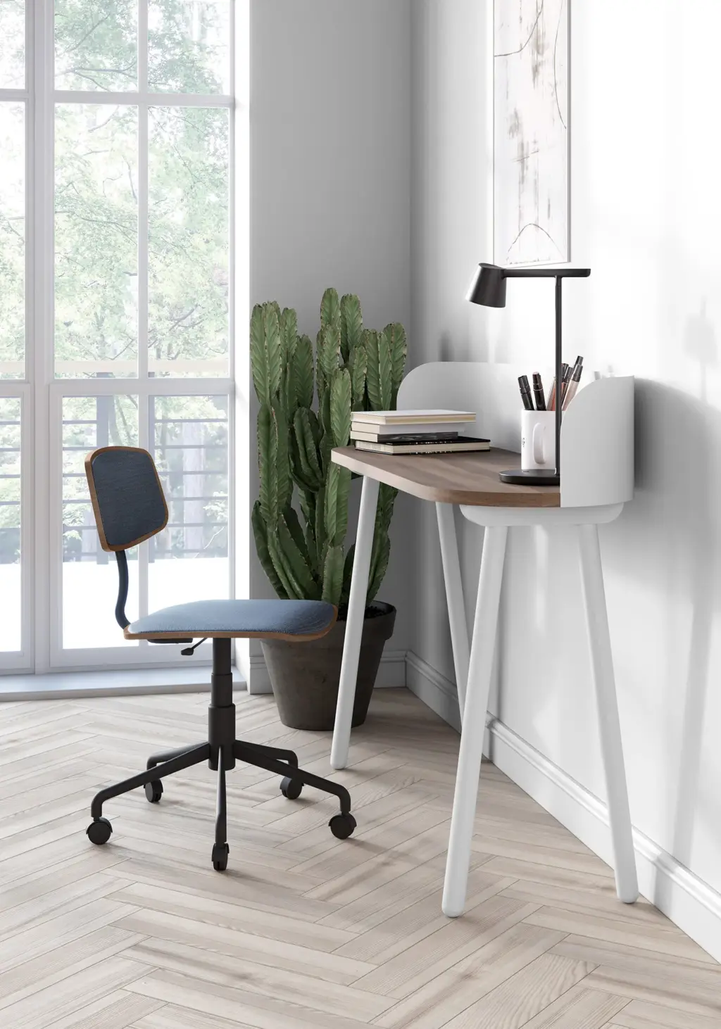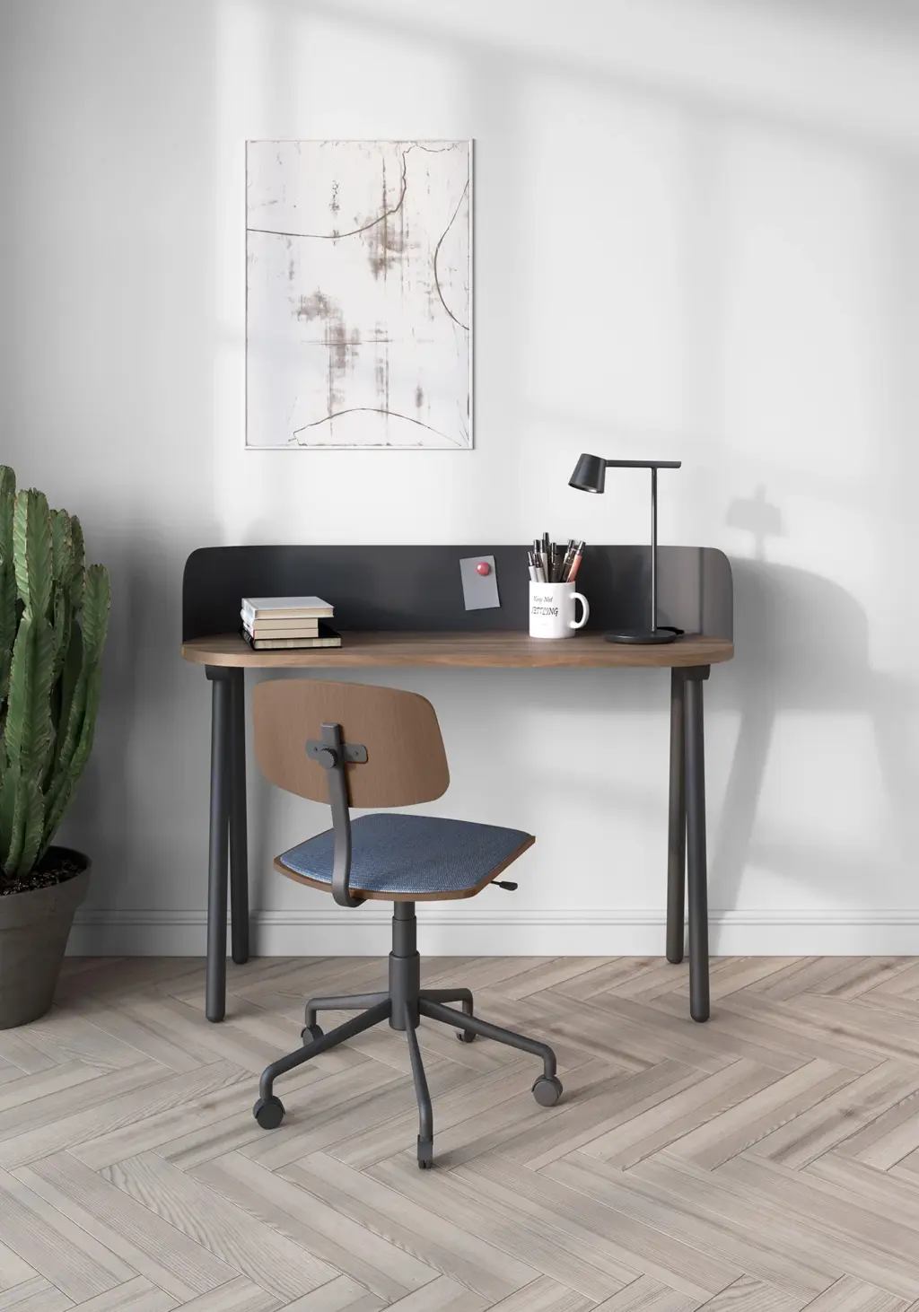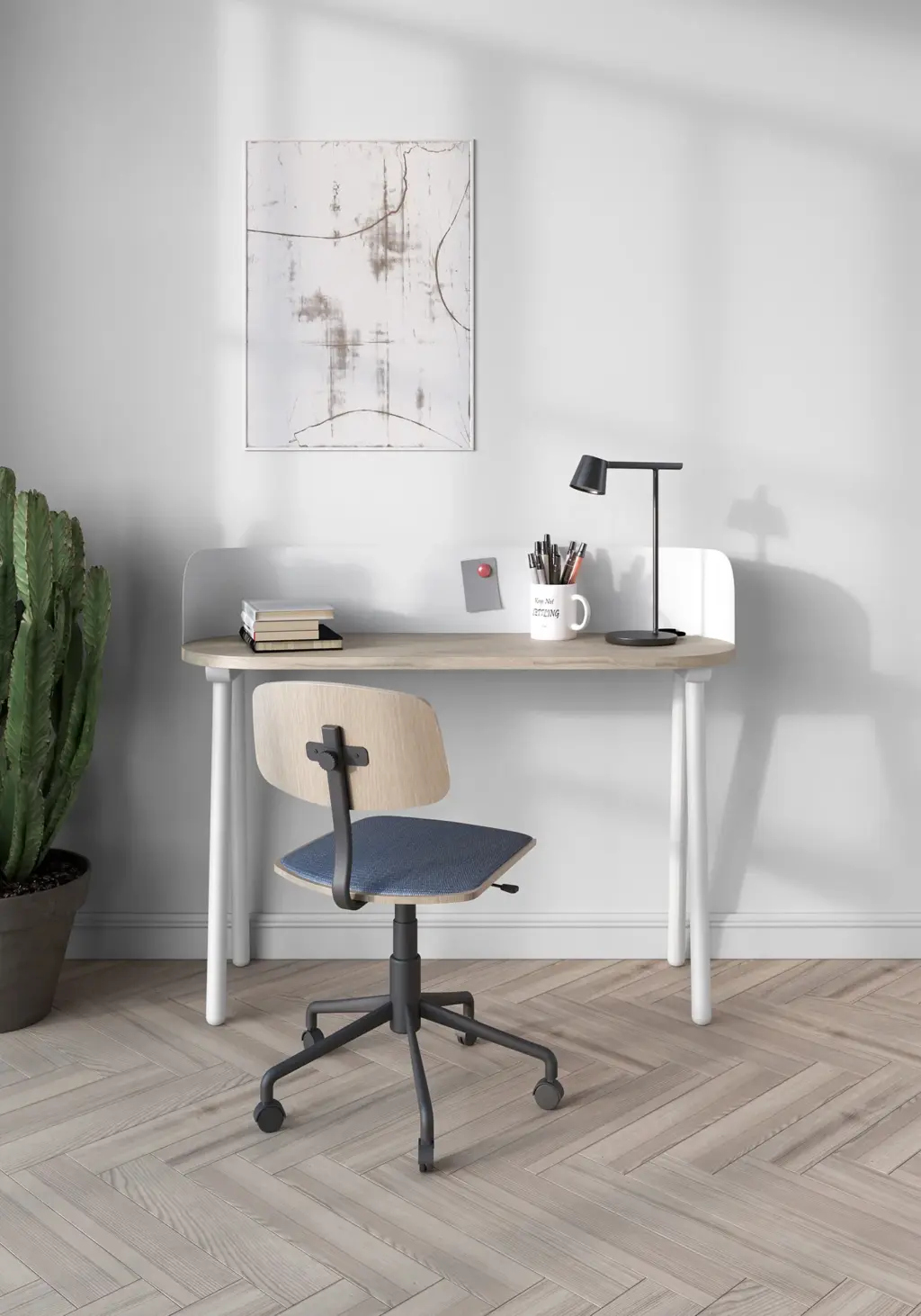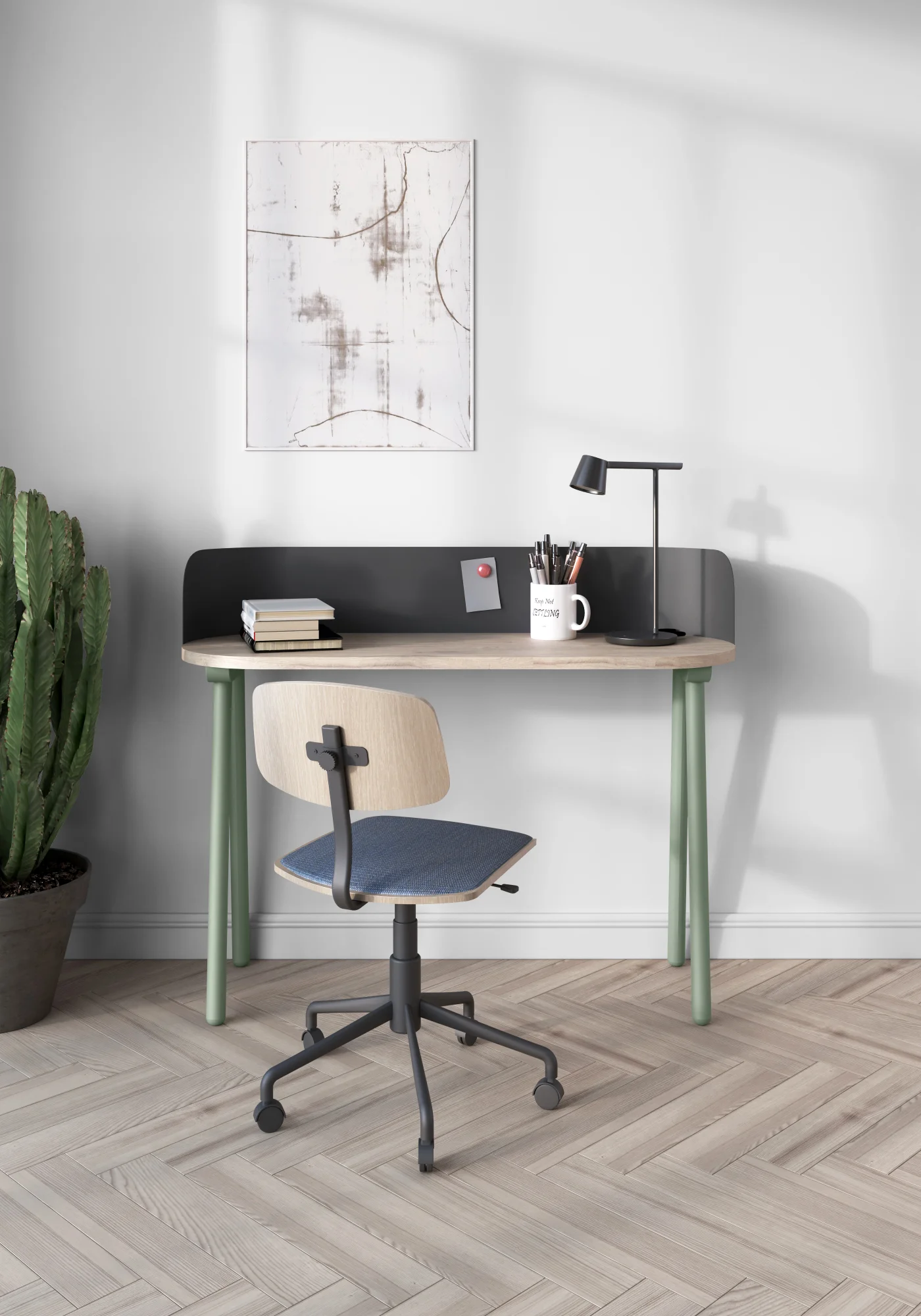 Mesa de estudio sencilla fabricada en melamina, haya maciza y metal. Su amplia tapa dispone de un panel metálico donde podrás pegar tus notas con imanes. Su estilo neutro y sus infinitas posibilidades de color permite adaptarlo a múltiples espacios, ya sea en un dormitorio juvenil o en un despacho general.