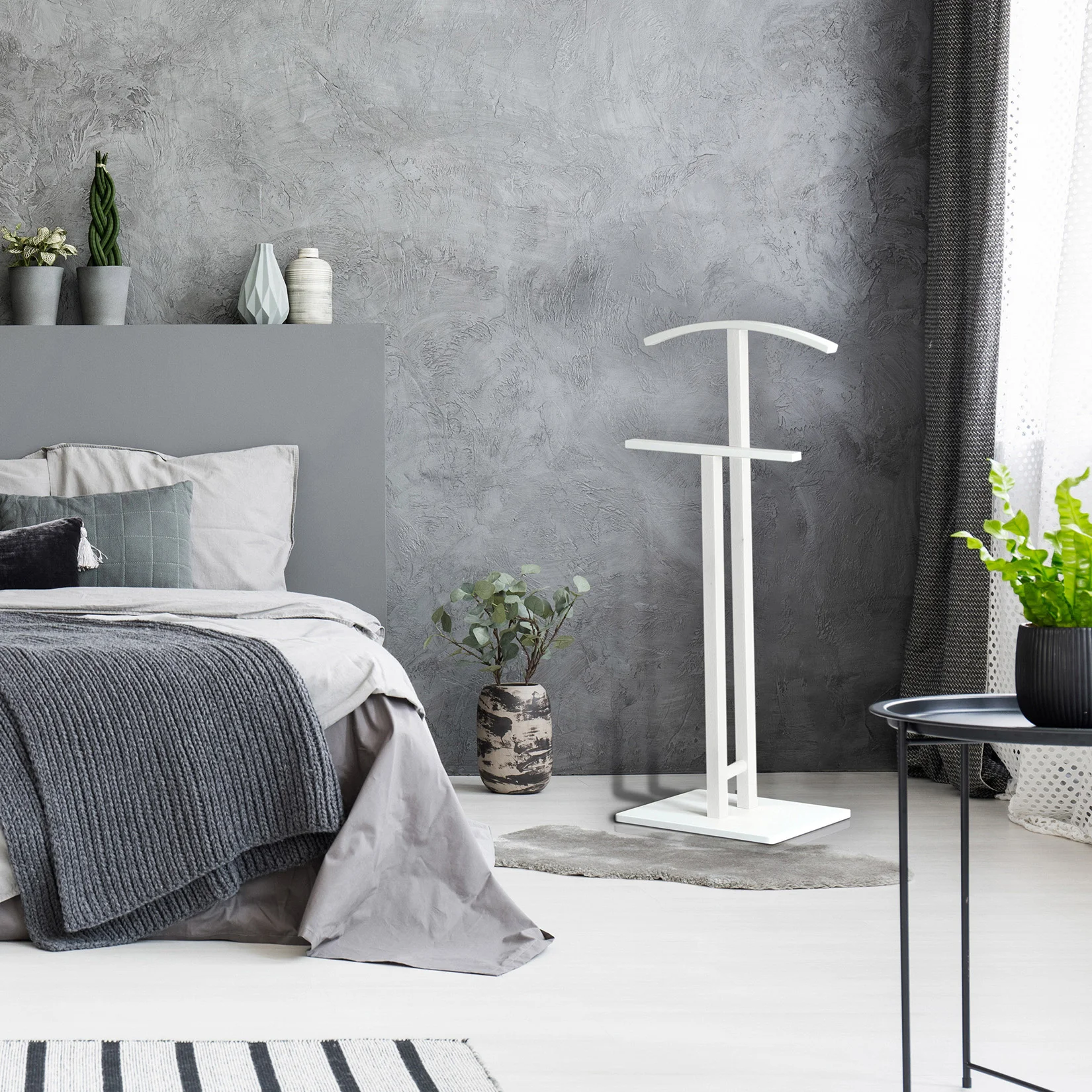 Galán de noche fabricado en madera de haya. Diseño sencillo en color blanco que se adaptará en múltiples estilos.