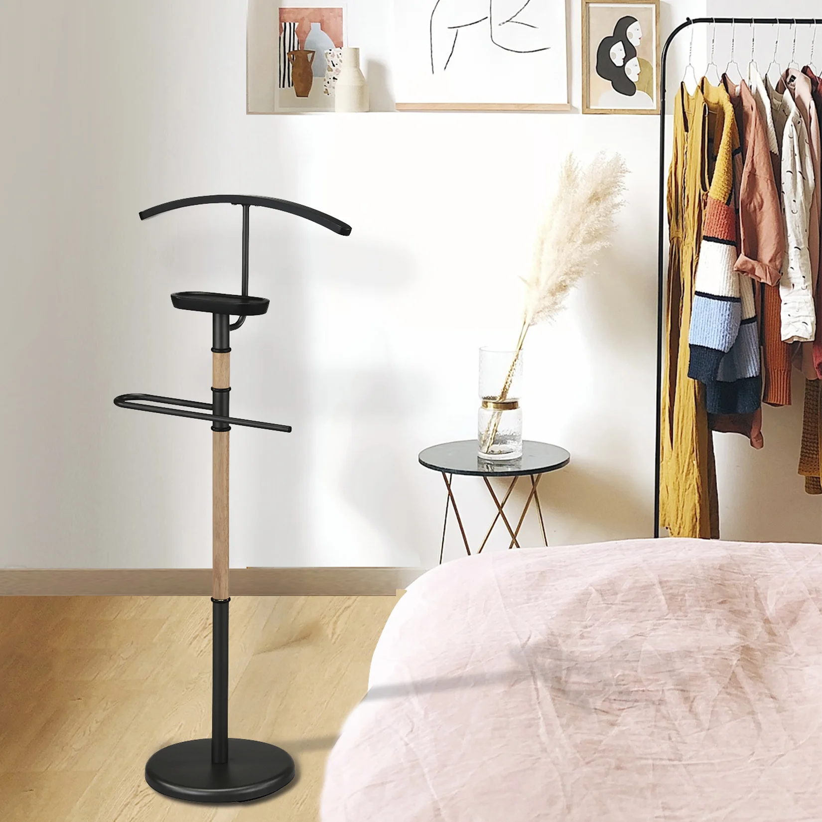 Galán de noche que combina madera y metal en color negro y roble. Formado por percha, pantalonera y pequeña bandeja, será el mejor accesorio del dormitorio.