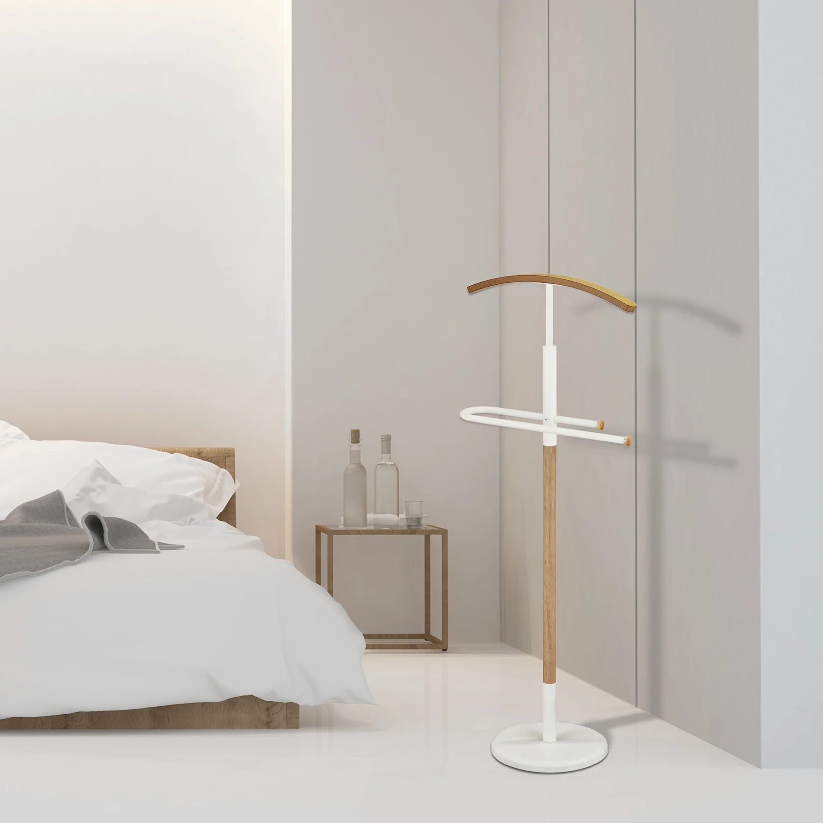 Galán de noche que combina madera y metal en color blanco y roble. Formado por percha y pantalonera, será el mejor accesorio del dormitorio.
