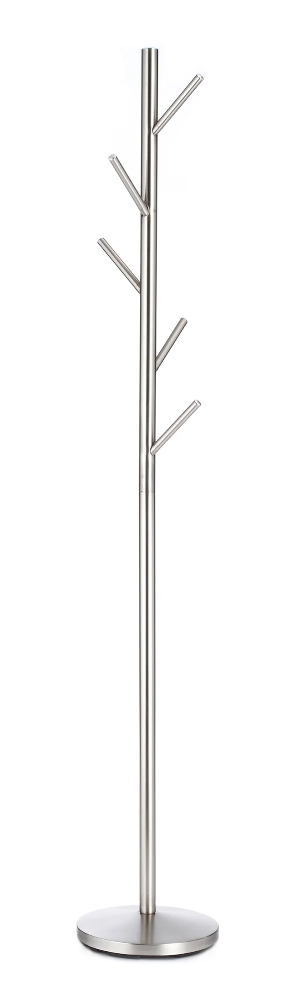 Perchero de pie metálico. Diseño en forma de árbol, lo que permite colgar numerosas prendas u objetos. Diseño neutro que encajará en múltiples ambientes.