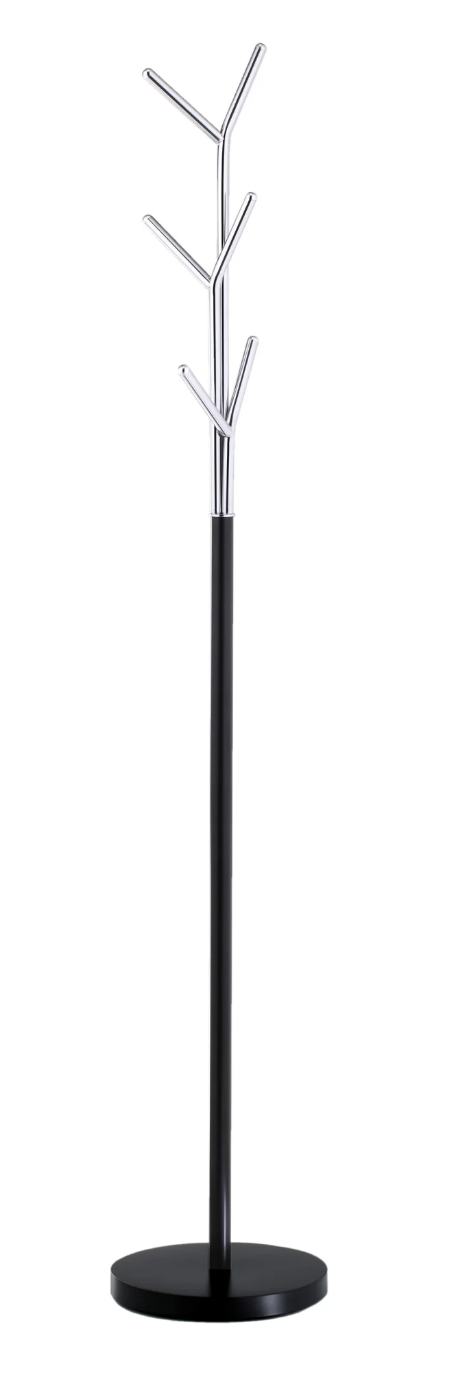 Perchero metálico en color negro y cromado. Los colgadores a modo ramas le dan gran funcionalidad, permitiendo colgar numerosas prendas.