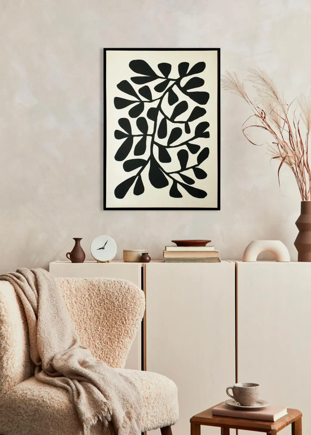 Diseño tridimensional en espuma de poliuretano con relieve geométrico y acabado blanco roto. Su marco MDF blanco y trasera de MDF reforzada lo hacen ideal para espacios contemporáneos. Incluye herrajes para colgar.