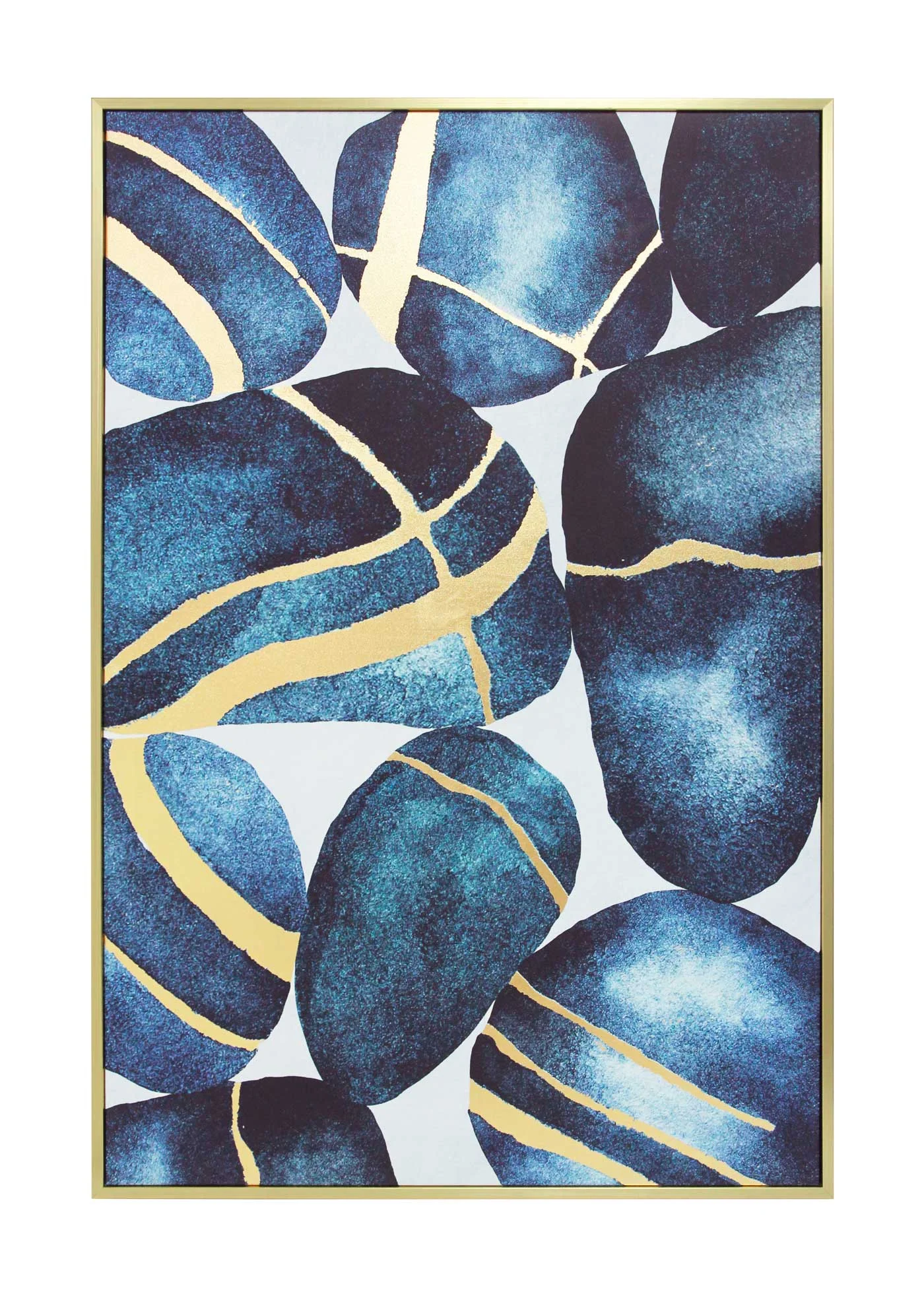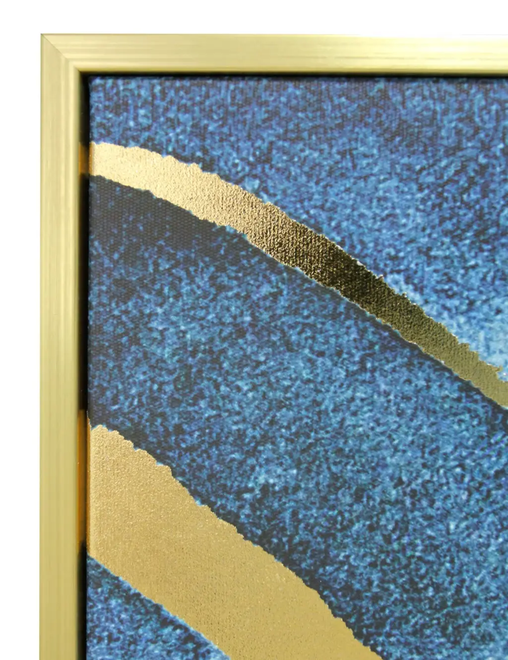 Diseño artístico en lienzo sintético con fondo gris texturizado y líneas negras y grises oscuras que asemejan pinceladas, acentuado con toques dorados. Marco en poliestireno negro y bastidor de MDF. Incluye herrajes para colgar.