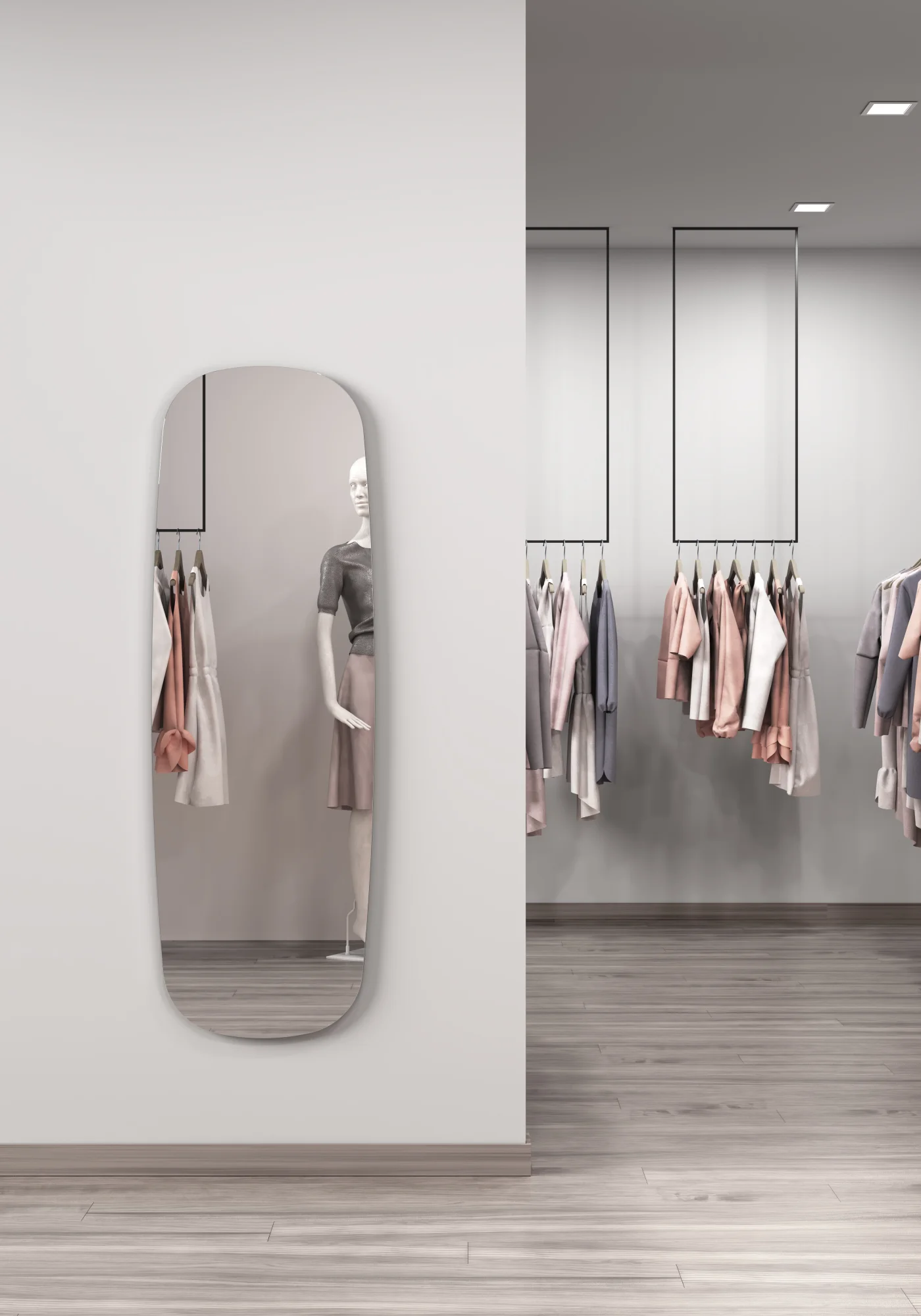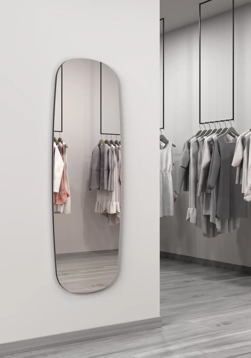 Espejo ovalado de cuerpo entero con trasera de MDF. El perfil en madera es visible y lo podrás lacar en múltiples opciones de color para adaptarlo al estilo de tu hogar.