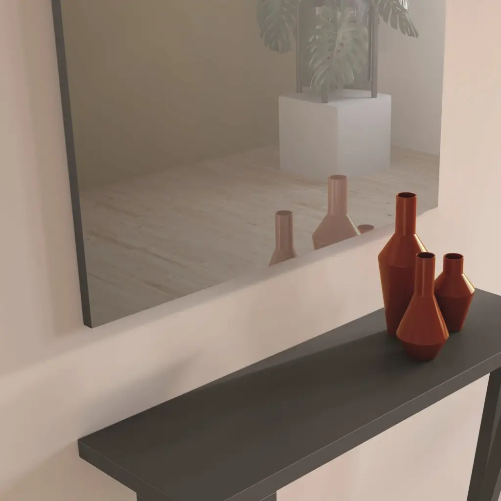 Espejo rectangular sobre trasera de MDF. Diseño sencillo y elegante, que podrás combinar con nuestras diversas consolas. Además, el perfil de la trasera es visible y podrás elegir el color que mejor se adapte a tus necesidades.