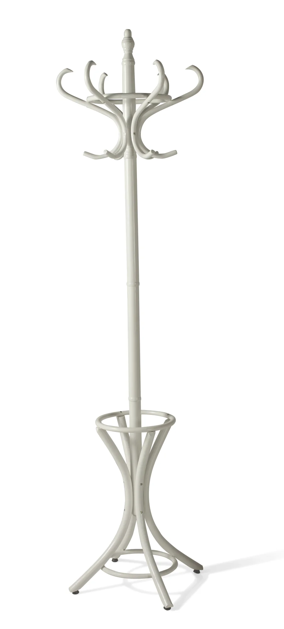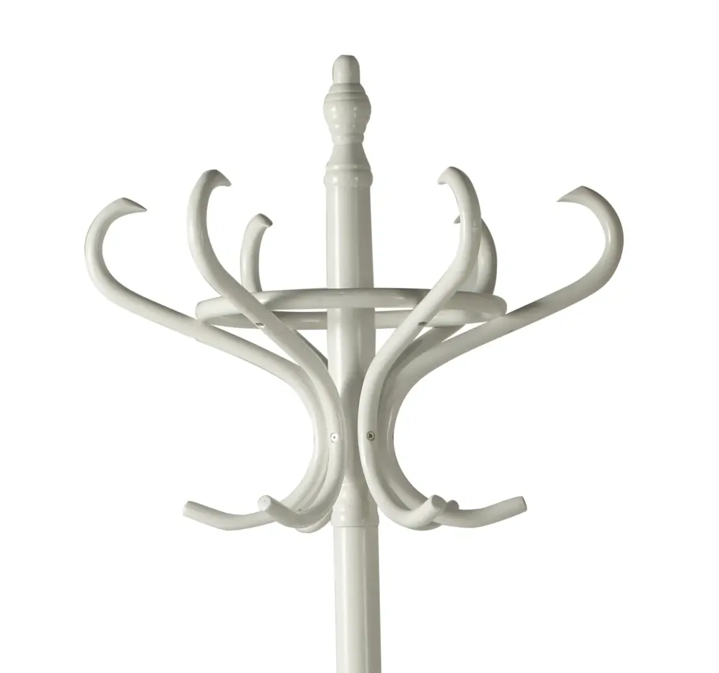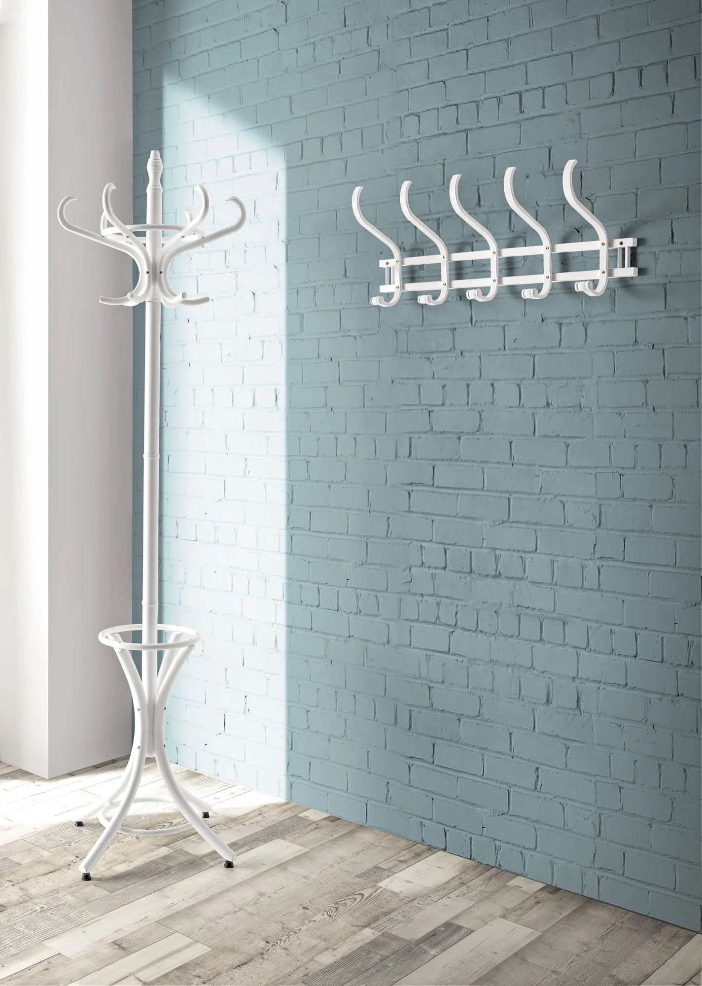 Perchero de pie de estilo clásico en madera color blanco. Ideal para los espacios más rústicos o para dar un toque vintage en la entrada o el dormitorio.