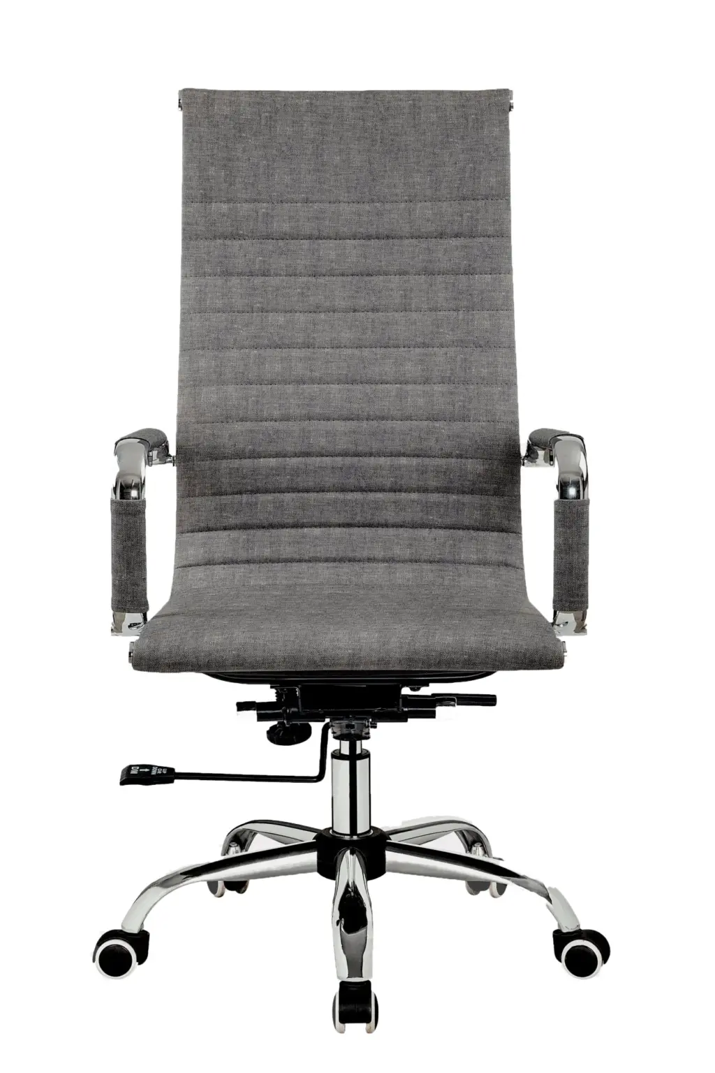 Silla de oficina de respaldo alto en polipiel color ceniza con un diseño moderno y elegante. Cuenta con sistema basculante para mayor comodidad. Incluye cubre brazos para un soporte cómodo y ruedas de silicona, ideales para un desplazamiento suave y seguras para todo tipo de suelos, incluido el parquet. Perfecta para aportar estilo y funcionalidad a cualquier espacio de trabajo.