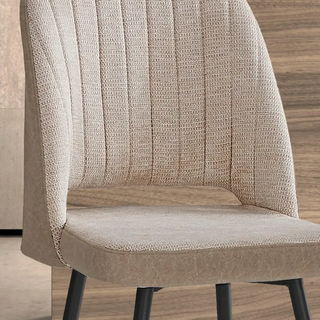 Esta silla combina la estructura de patas metálicas negras con el asiento y respaldo en color beige tapizados con tela hidrófuga por la parte delantera y tela lisa de fácil limpieza por la parte trasera. Perfecta para complementar cualquier espacio, desde comedores hasta oficinas modernas, brindando un estilo sofisticado y acogedor. Se sirven en set de 2 unidades.