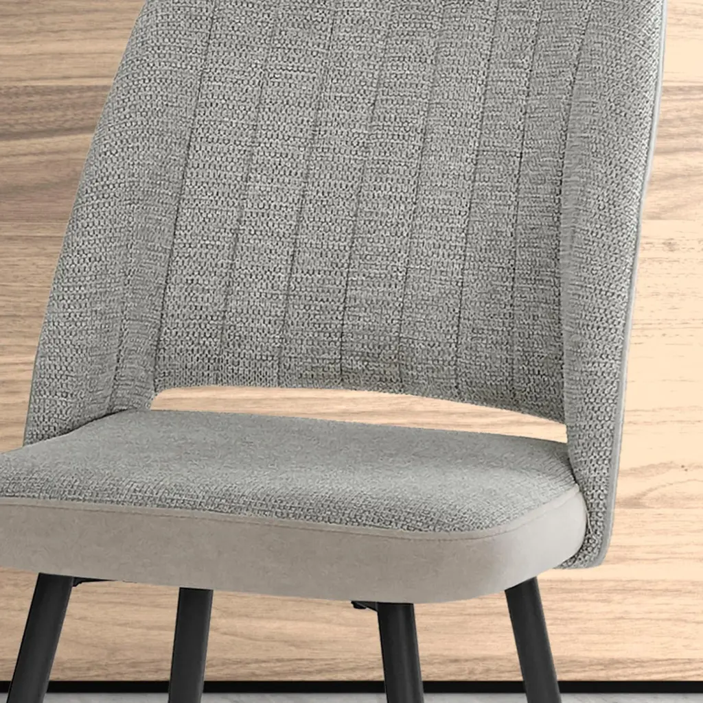 Esta silla combina la estructura de patas metálicas negras con el asiento y respaldo en color gris tapizados con tela hidrófuga por la parte delantera y tela lisa de fácil limpieza por la parte trasera. Perfecta para complementar cualquier espacio, desde comedores hasta oficinas modernas, brindando un estilo sofisticado y acogedor. Se sirven en set de 2 unidades.