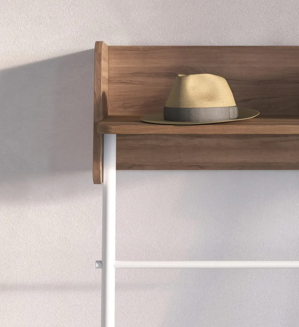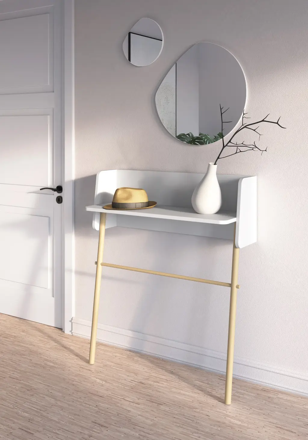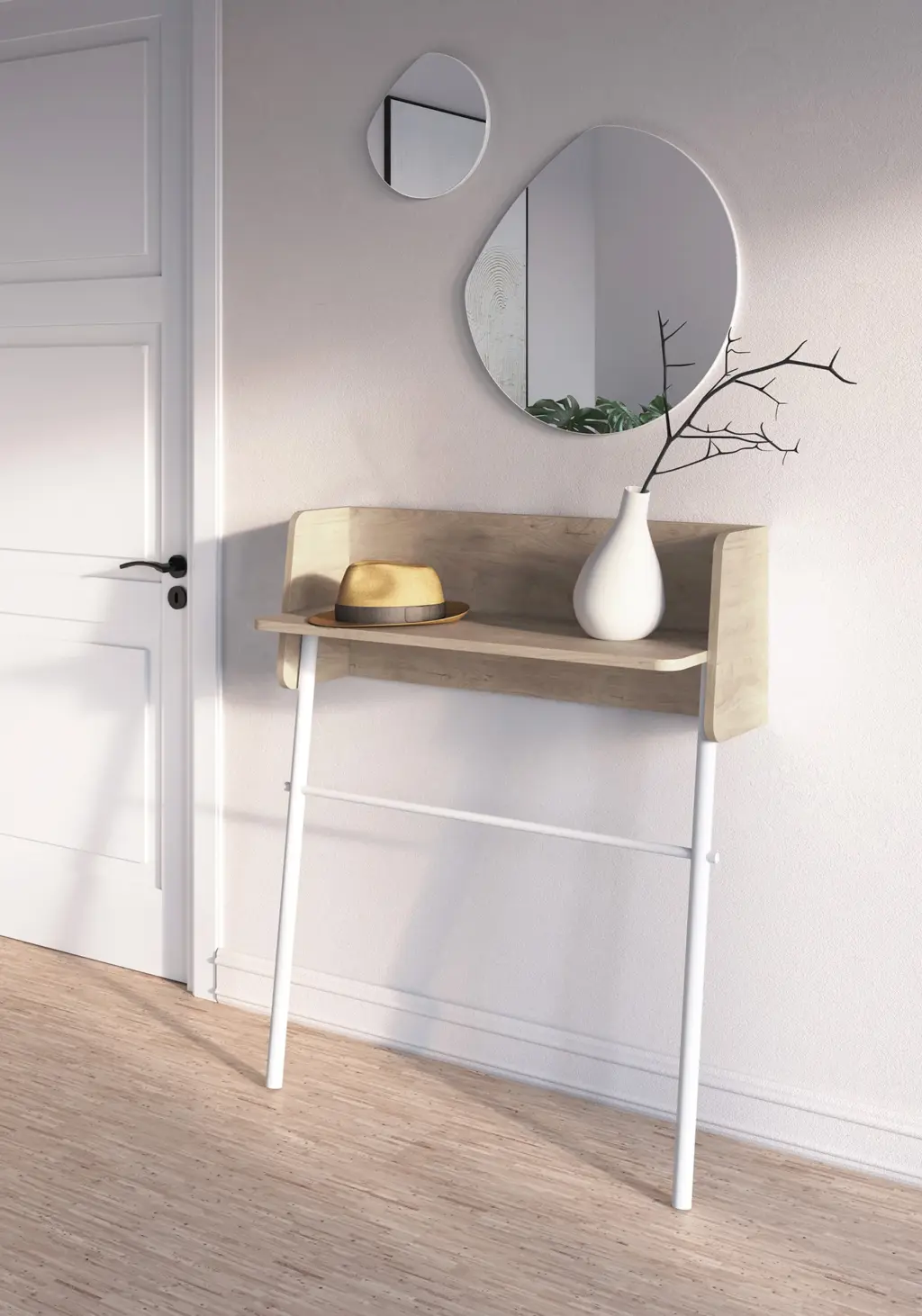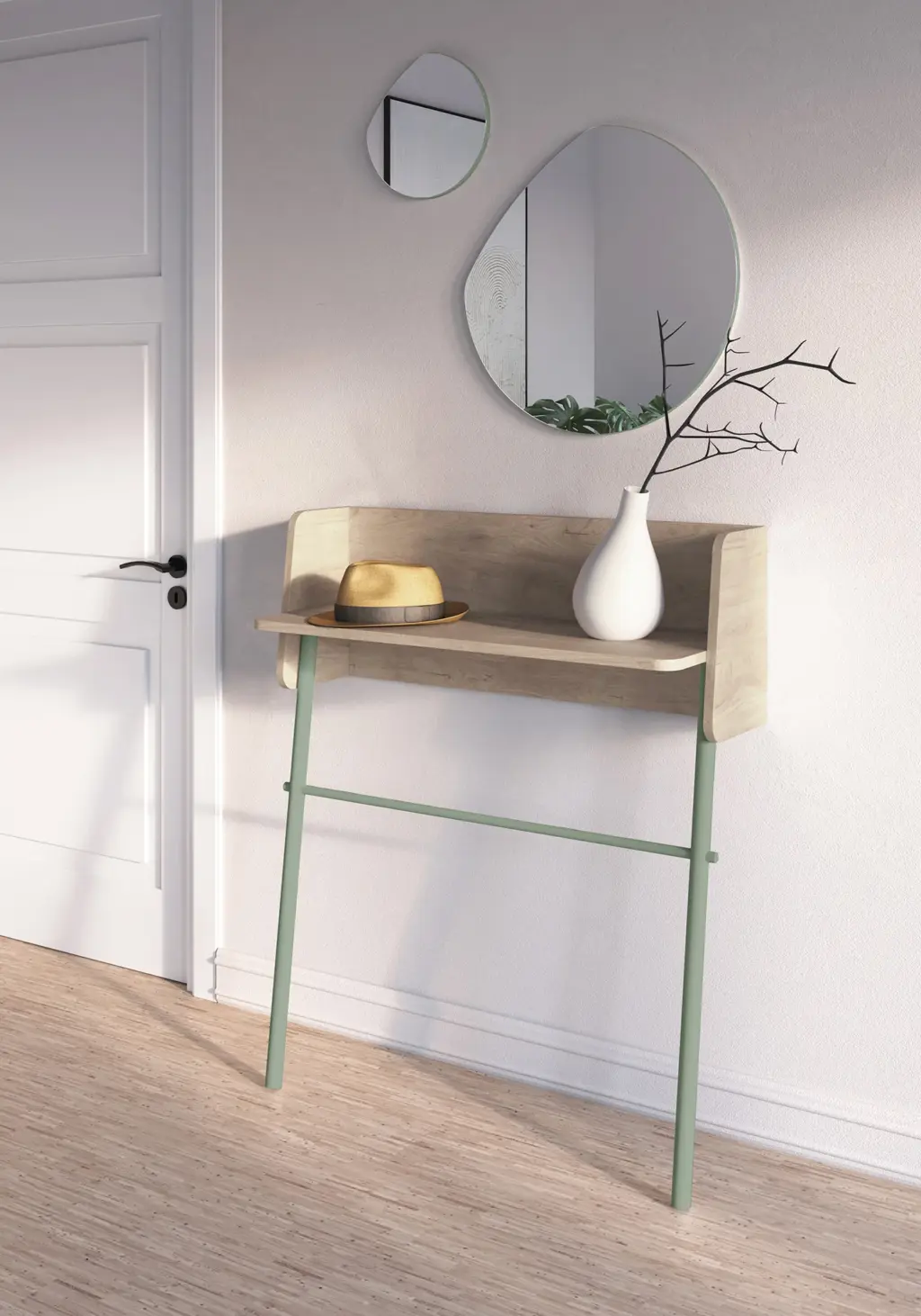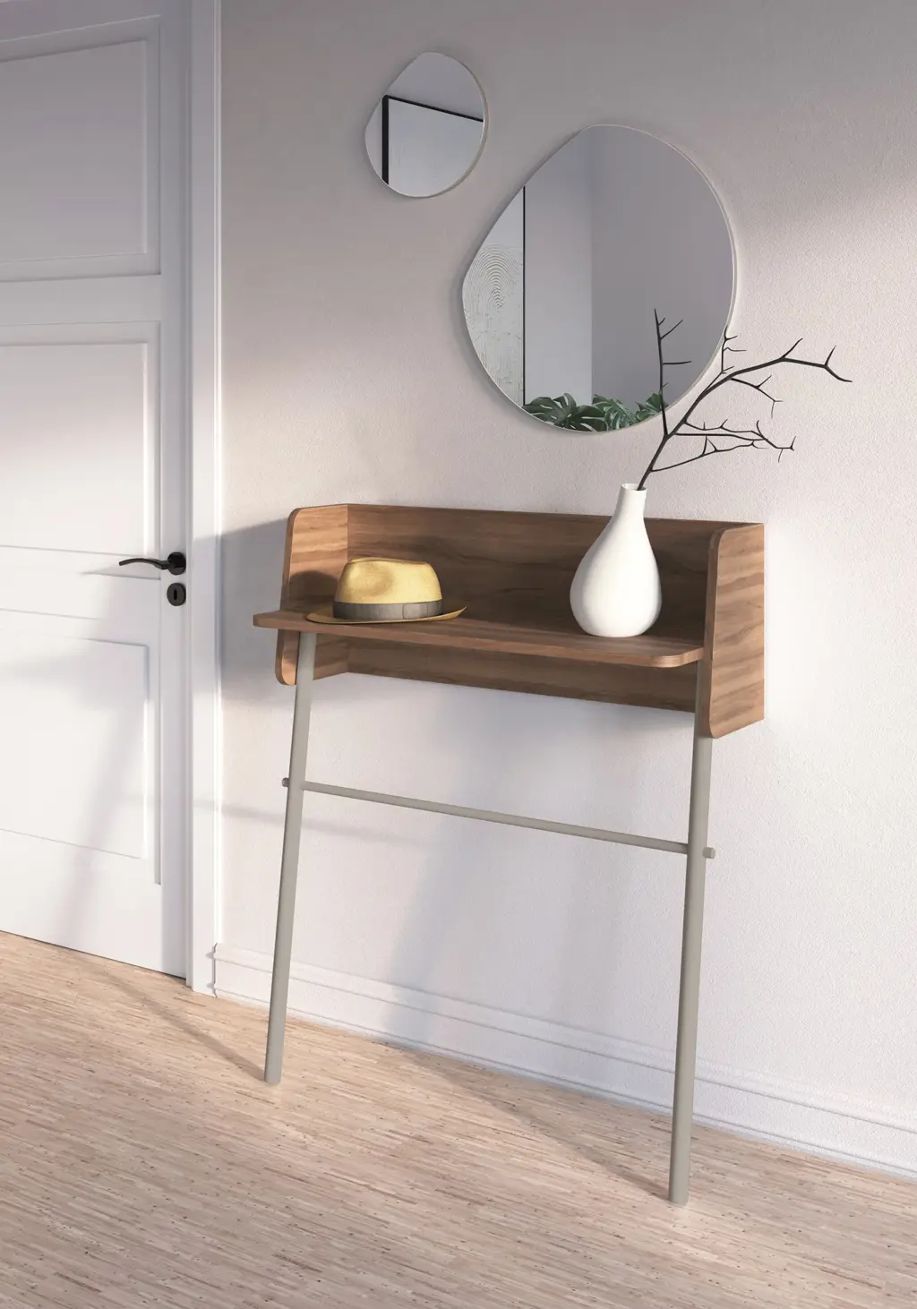 Consola fabricada en melamina y madera de haya en un estilo minimalista. Diseño sencillo con sistema de anclaje a la pared, ideal para espacios reducidos. Las múltiples opciones de color disponibles te permitirán adaptar esta pieza al espacio que elijas, proporcionando personalidad y un toque único.