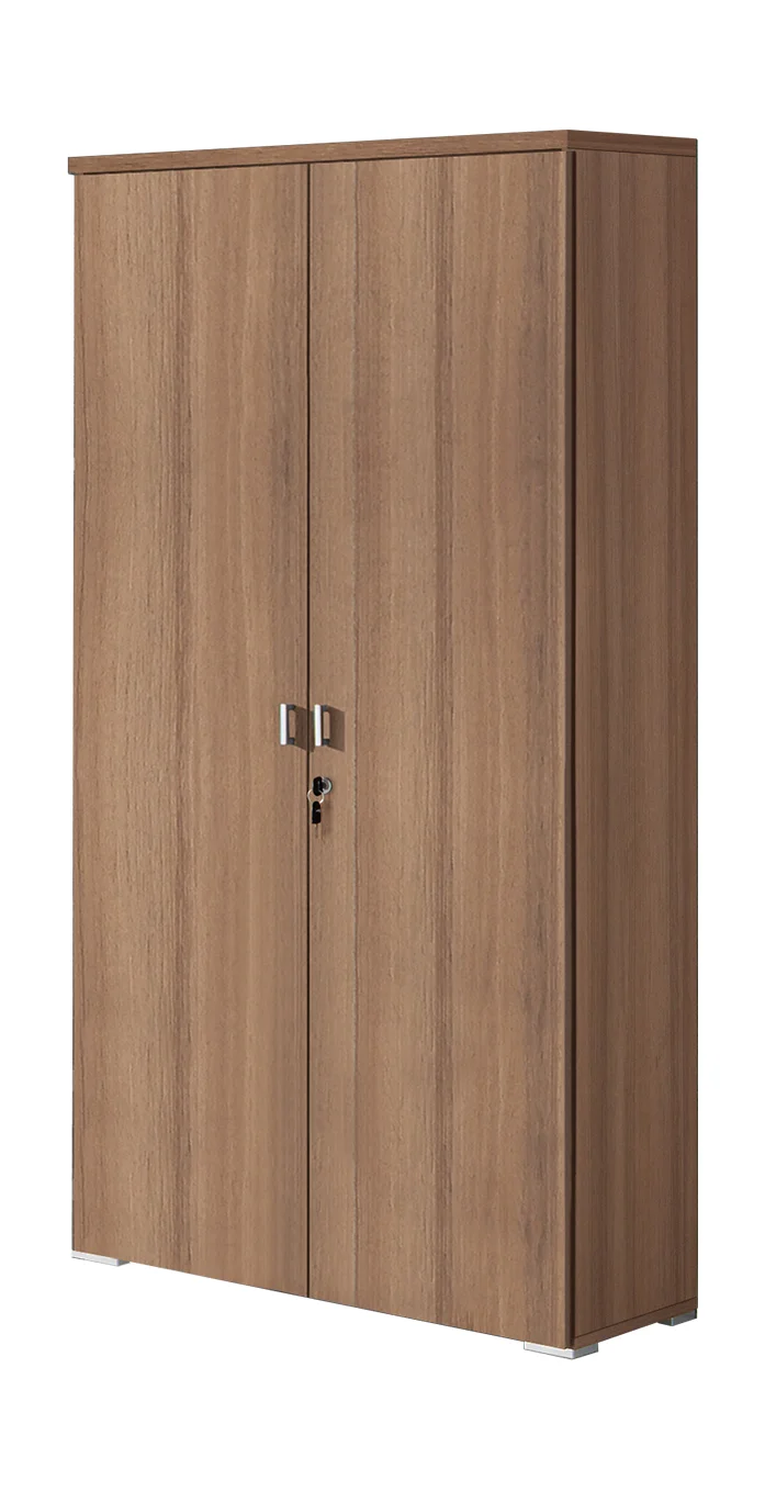 Armario de dos puertas fabricado en melamina. Dispone de 5 estantes interiores guardados con llave, aportando el almacenamiento necesario. Su diseño neutro permite utilizarlo en cualquier estancia para organizar cualquier tipo de objetos o material.